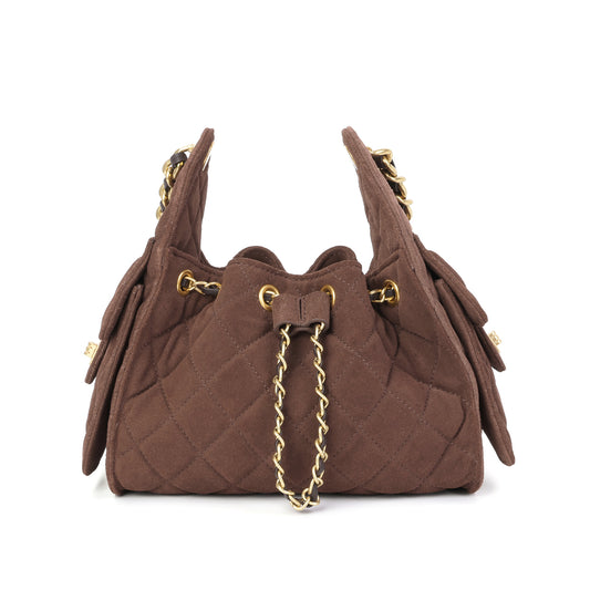 Soft Quilted Suede Shoulder Bag with Chain Detail