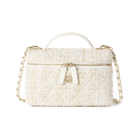 Tweed Mini Top-Handle Bag with Leather Handles & Chain Crossbody Strap