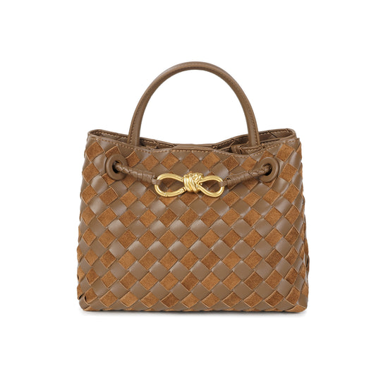 Suede Woven Leather Shoulder Bag with Braided Strap