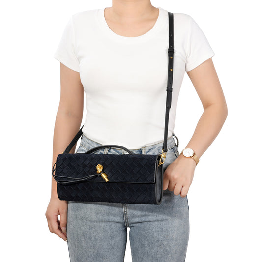 Woven Suede Leather Shoulder Bag with Gold Turn-Lock Accent