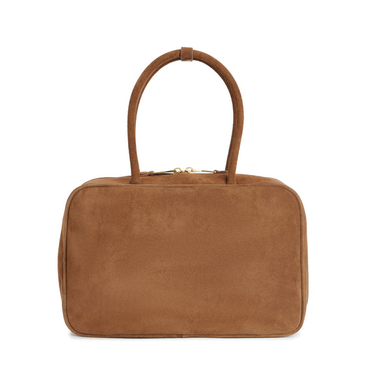 Suede Leather Top-Handle Tote with Double Zip Closure
