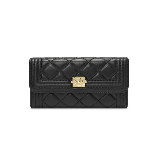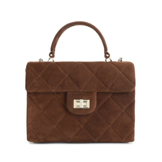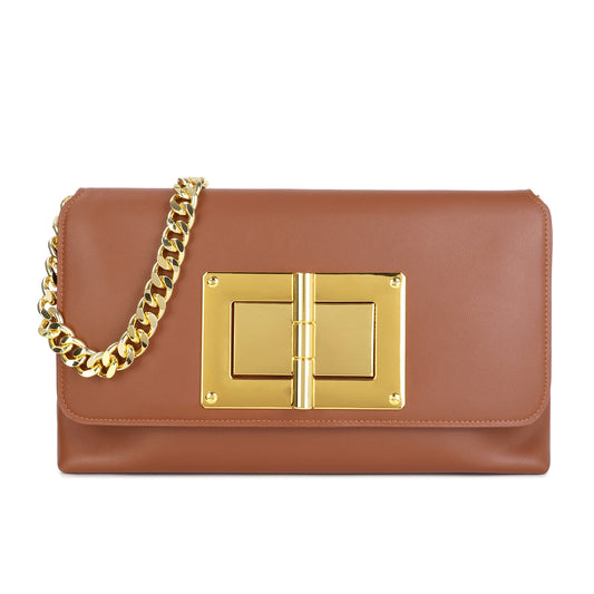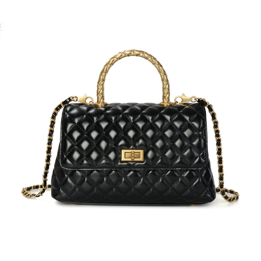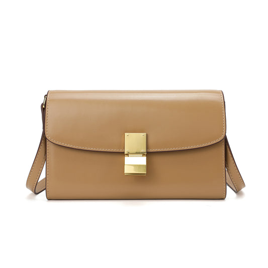 Elegant Structured Crossbody Bag with Gold-Tone Lock