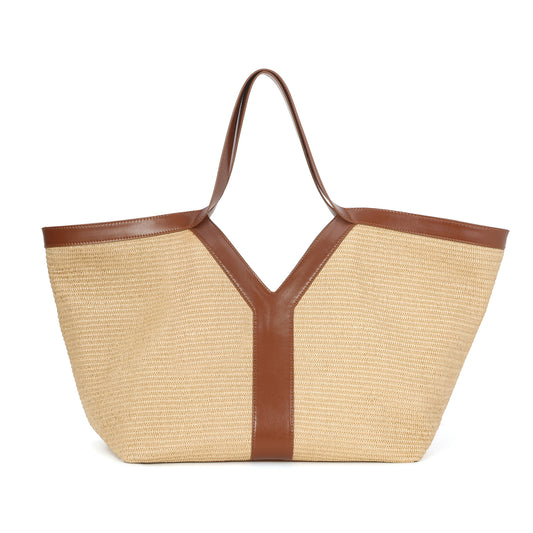 Oversized Raffia Tote with Leather Trim and Removable Pouch