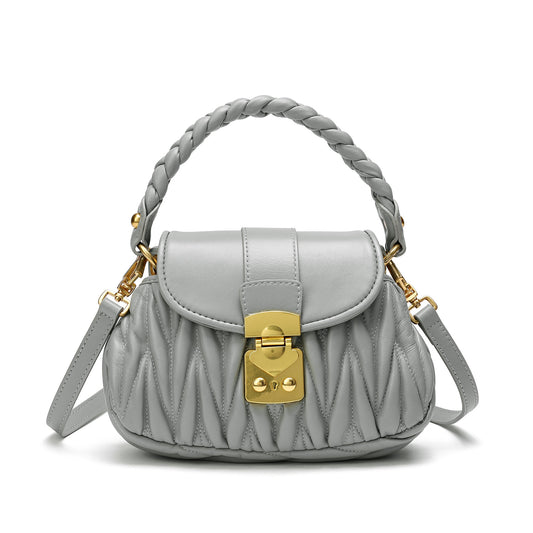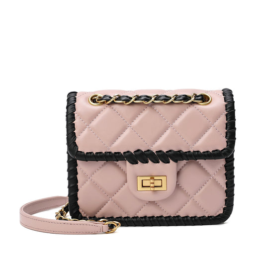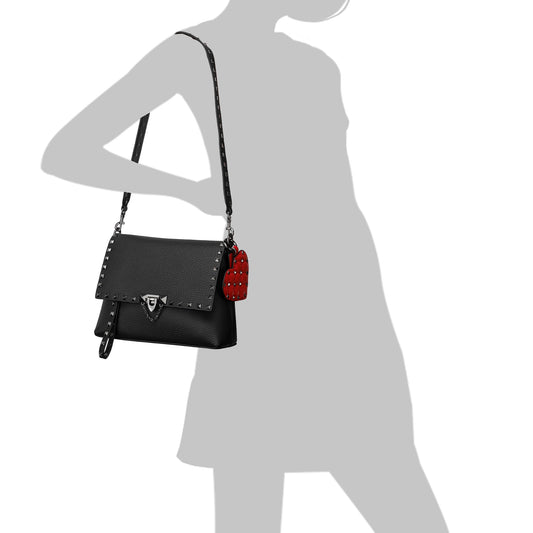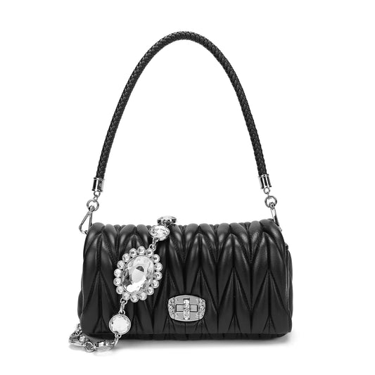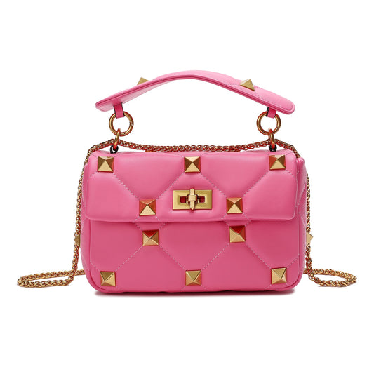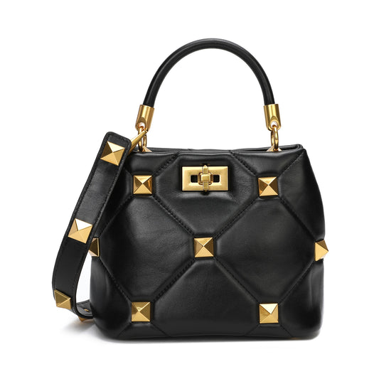 Quilted and Studded Sheepskin Leather Shoulder Bag