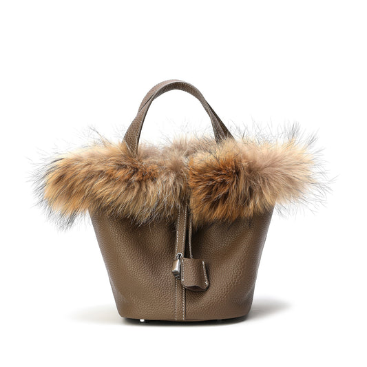Tiffany & Fred Full-Grain Pebble Leather & Genuine Fox Fur