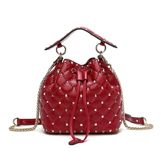 Quilted Studded Lambskin Drawstring Shoulder Bag