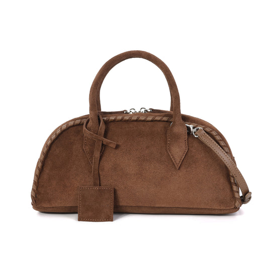 Suede Woven Leather Shoulder Bag with Braided Strap