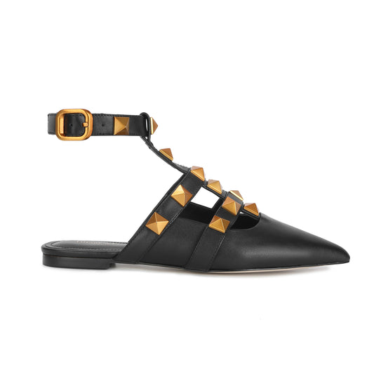 Black Studded Leather Pointed-toe Ankle Strap FlatsRegular price $289.00 USDRegular priceUnit price per