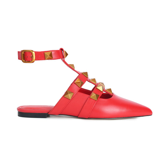 Red Studded Leather Pointed-toe Ankle Strap FlatsRegular price $289.00 USDRegular priceUnit price per-