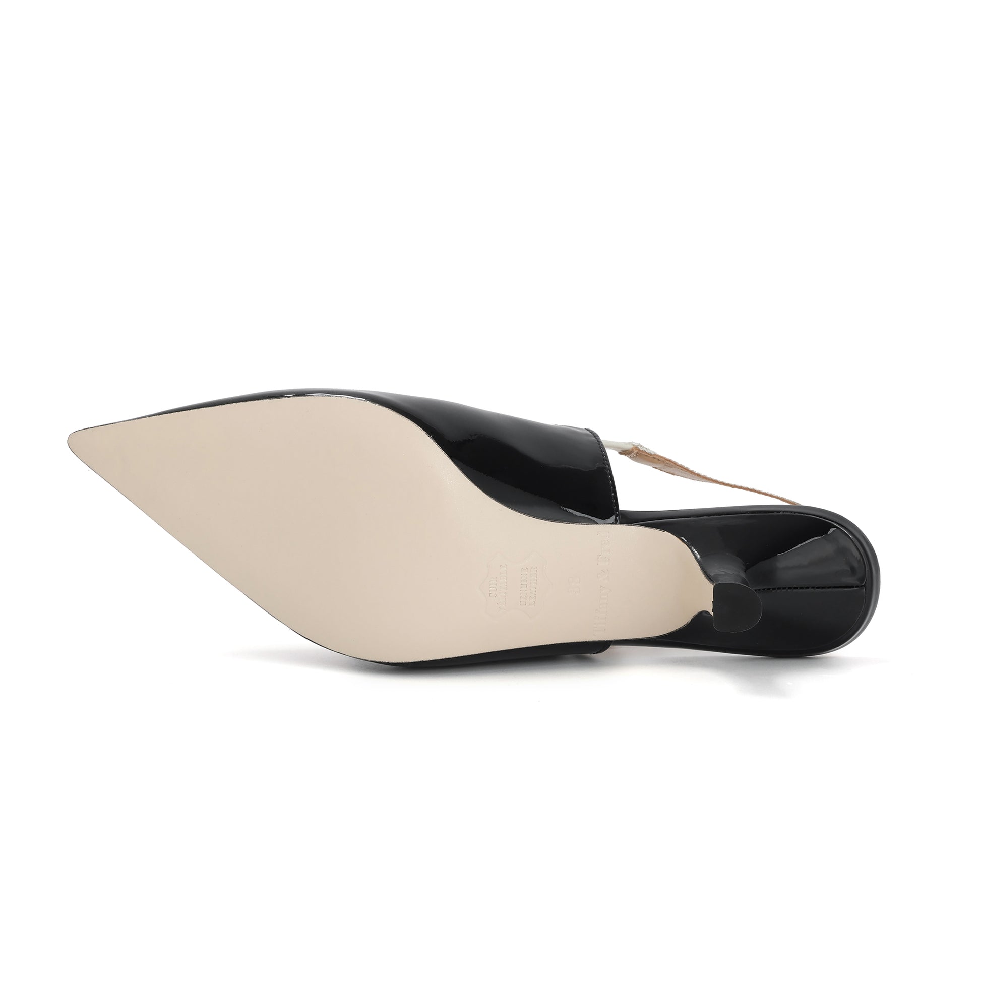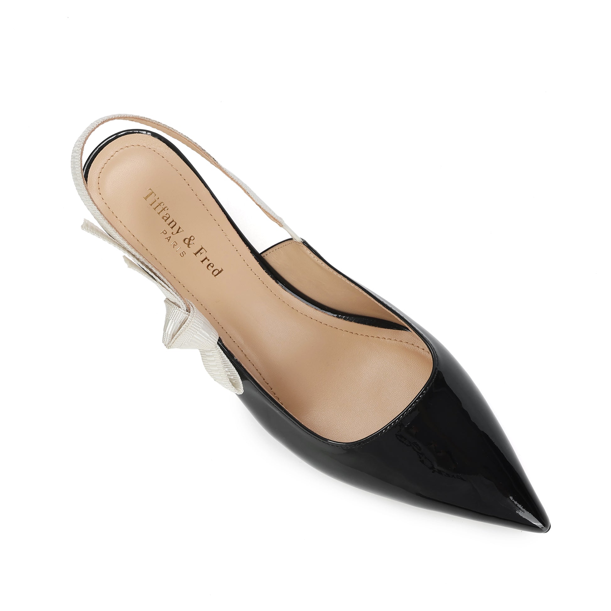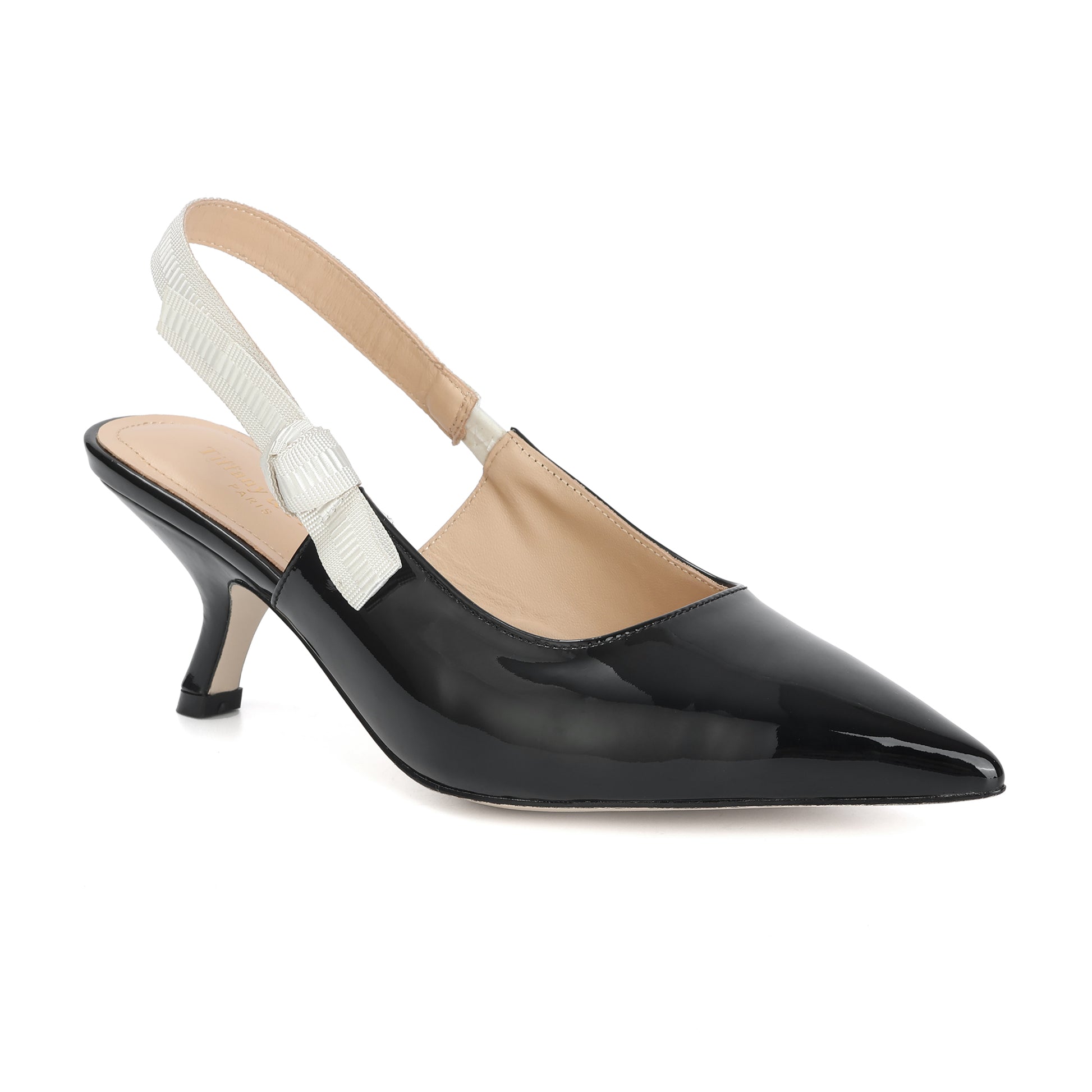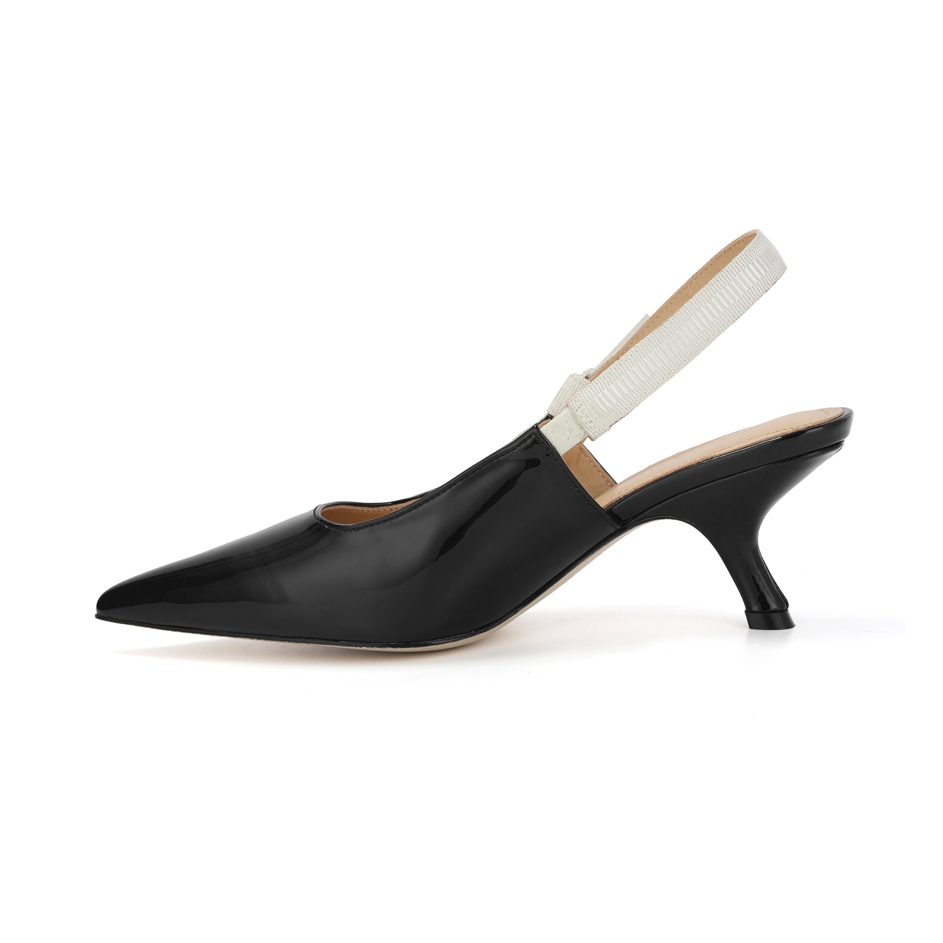 Black Patent Leather Slingback Kitten Heels with Ribbon Strap