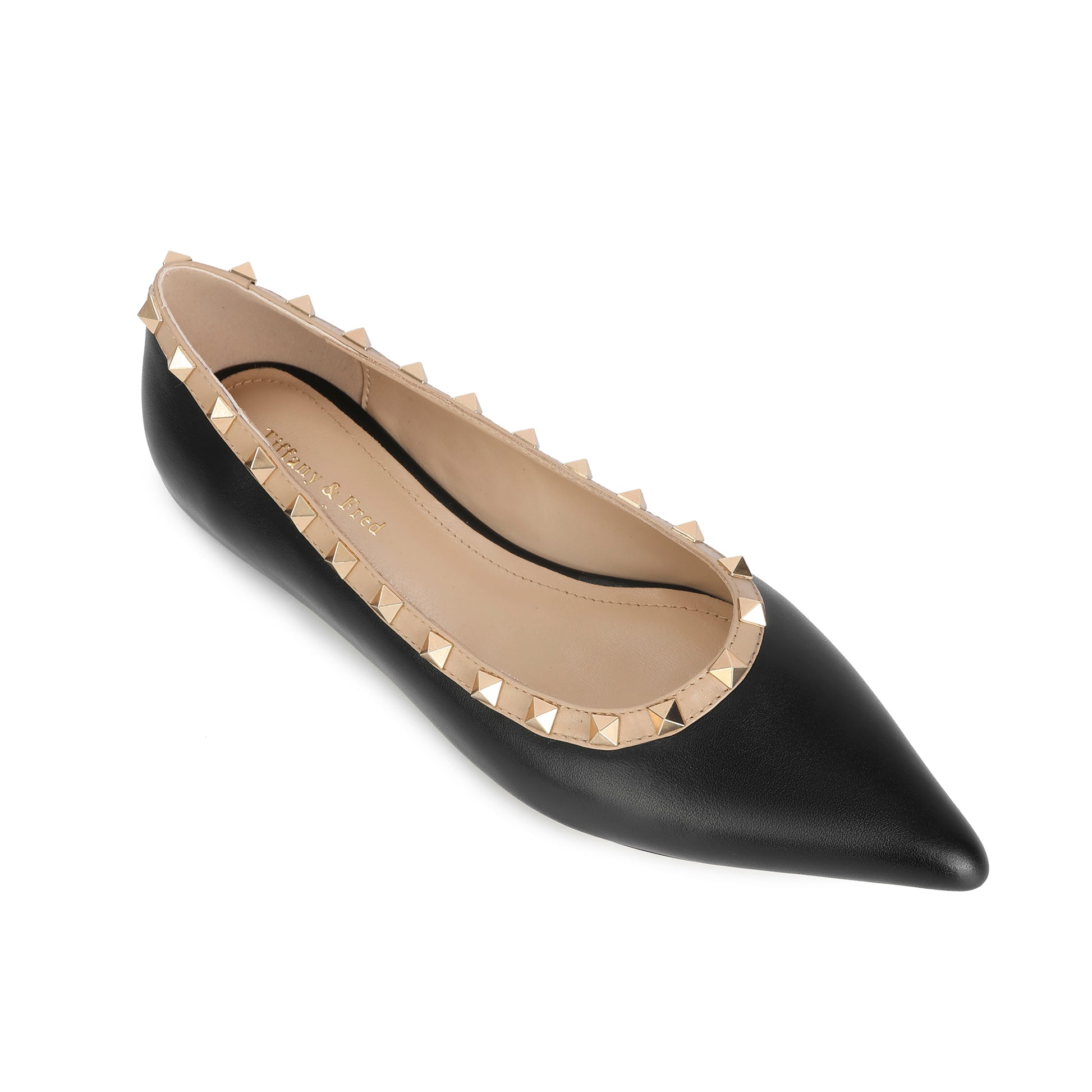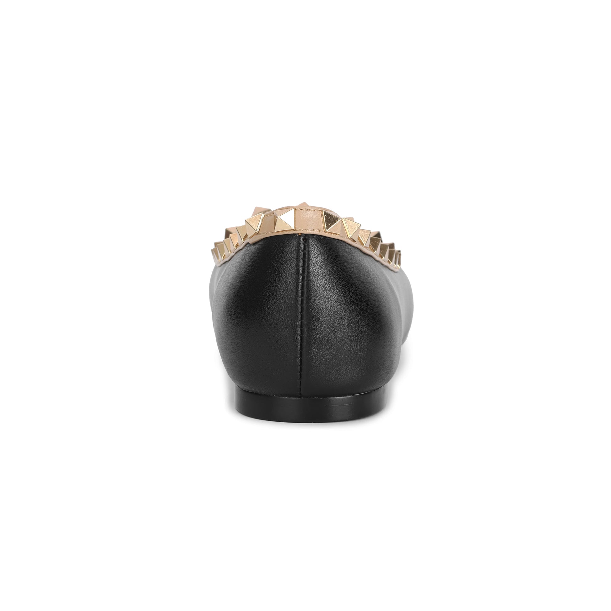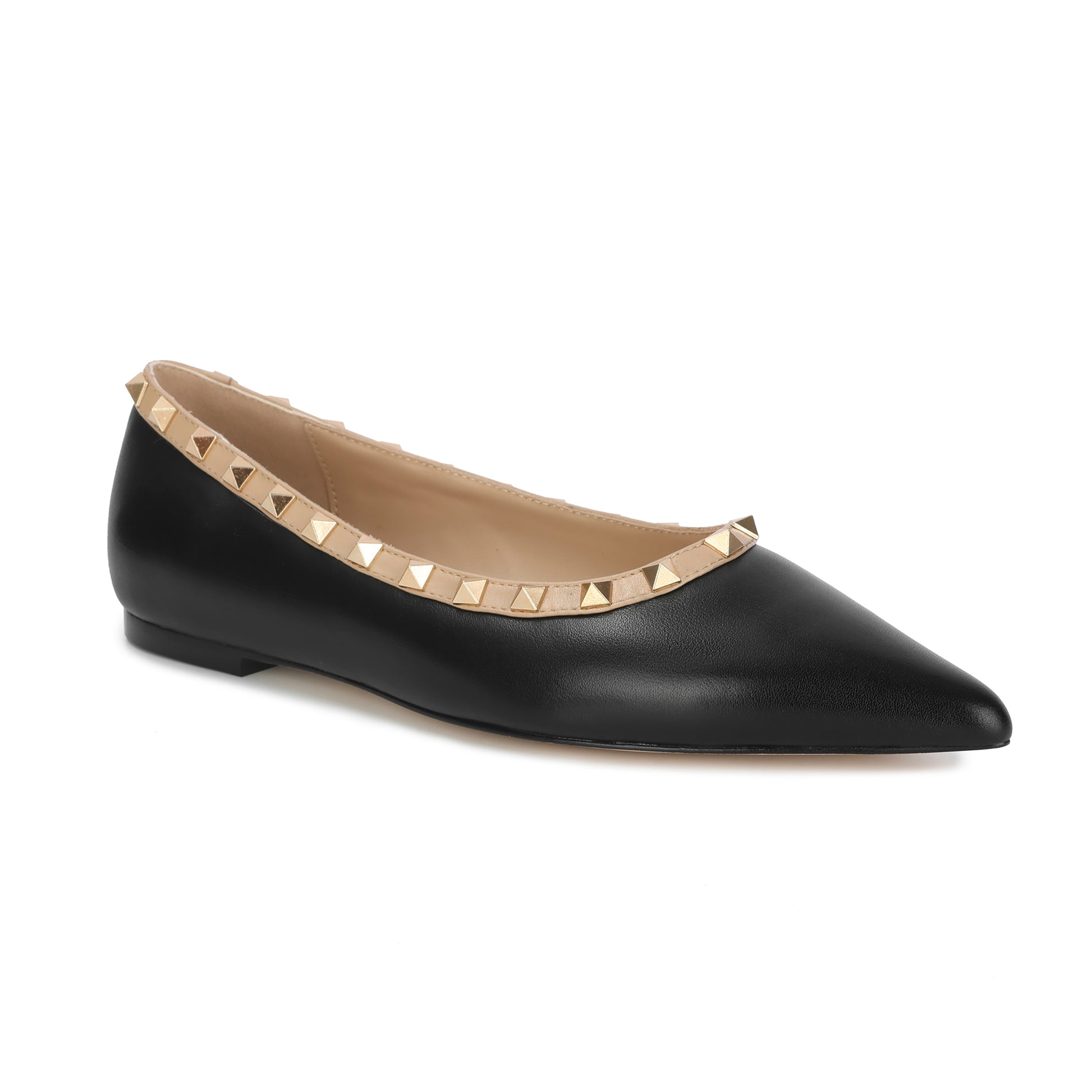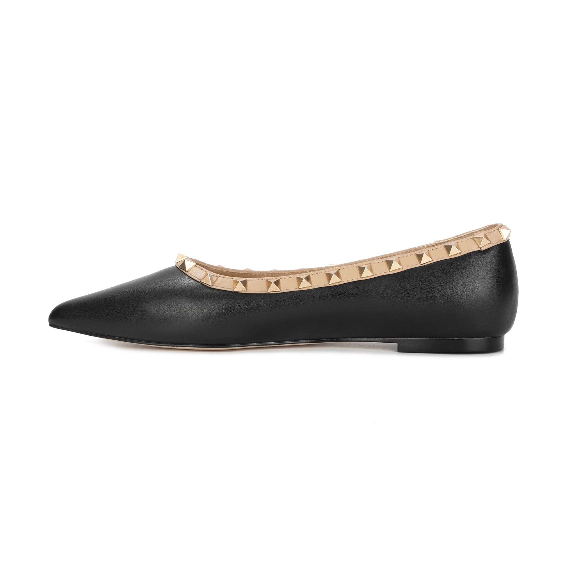 Black Studded Trim Pointed-toe Leather Flats