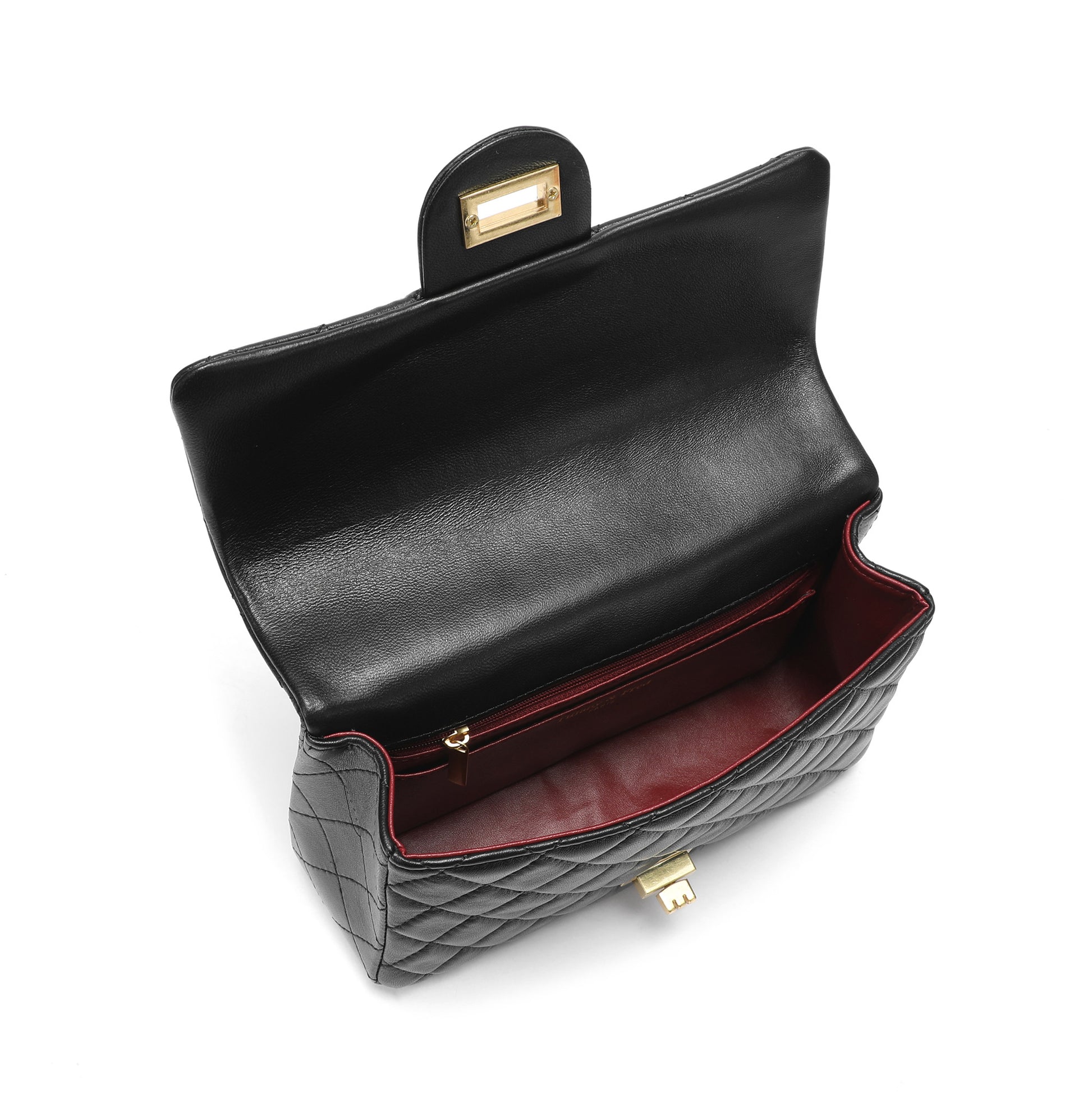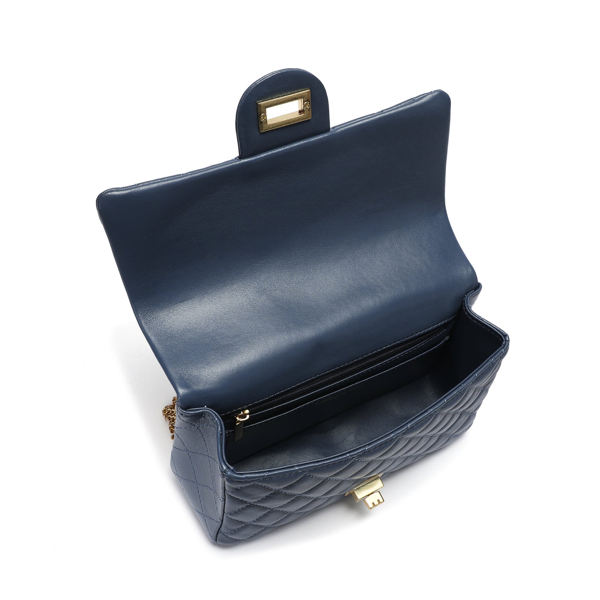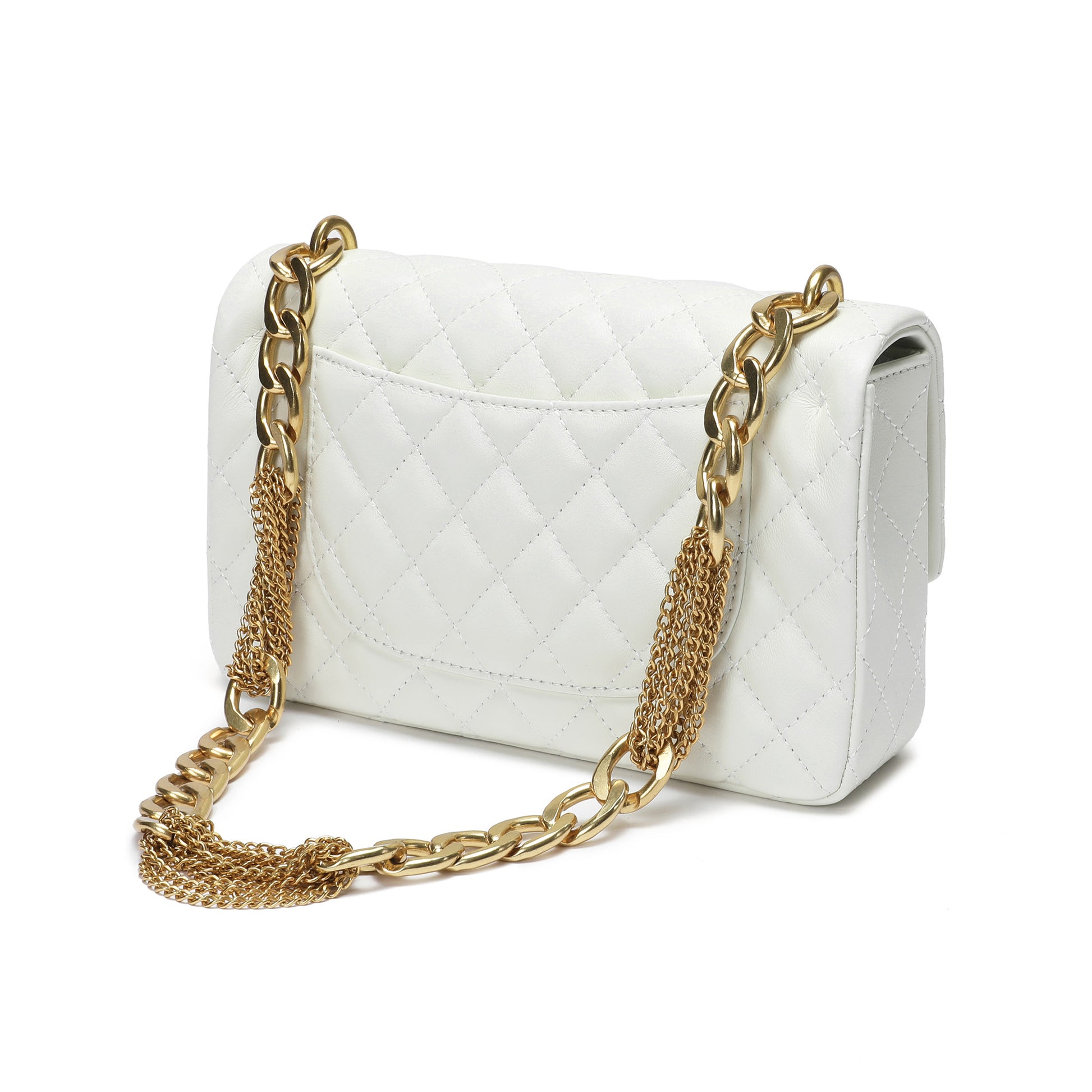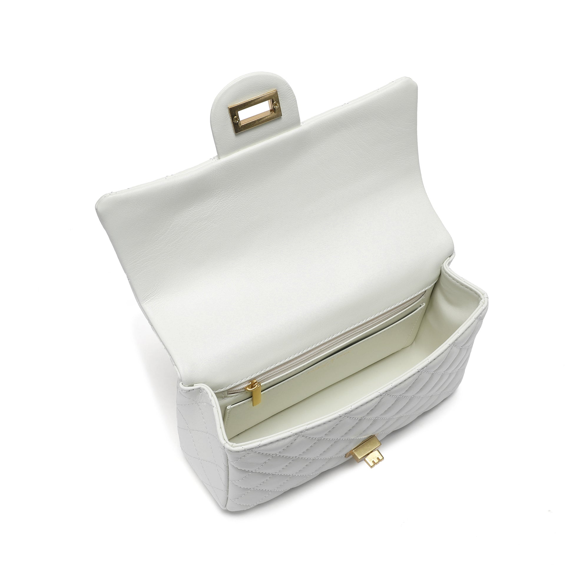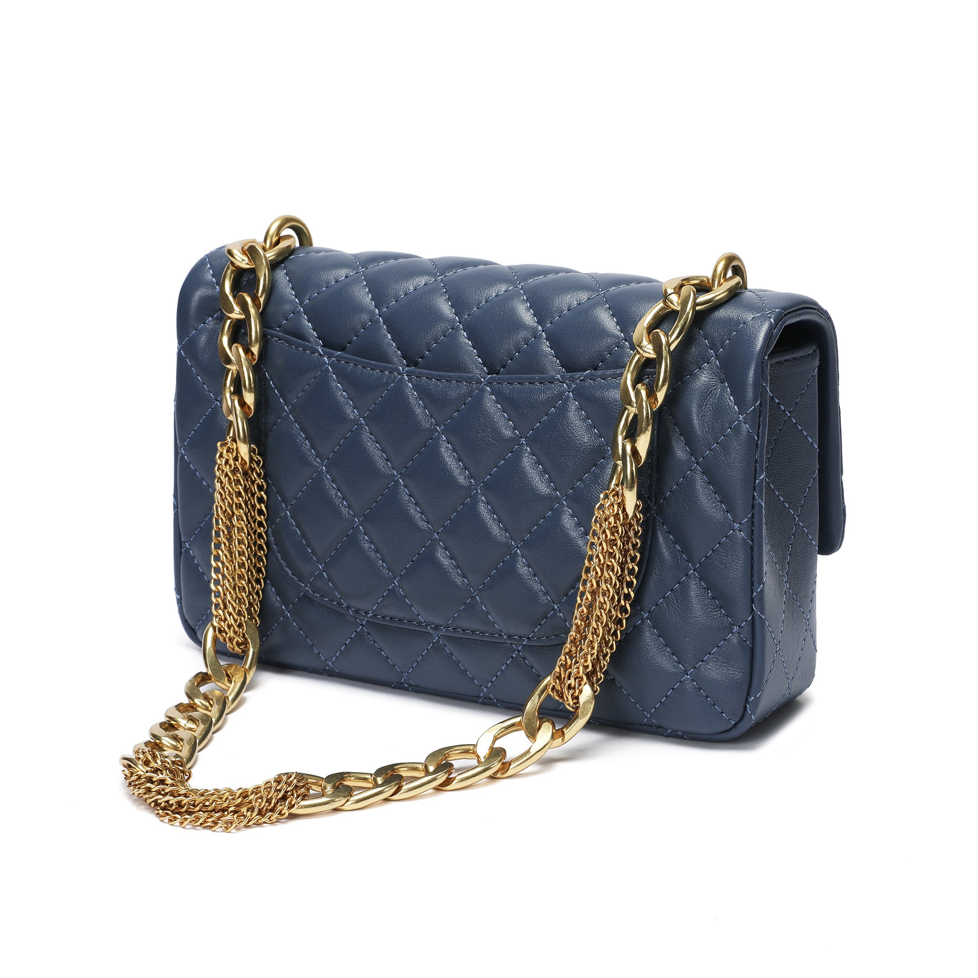 This luxurious quilted shoulder bag is the perfect combination of elegance and functionality. Made from premium leather, the bag features a timeless quilted design, enhanced by its gold-tone turn-lock closure and a stylish chain strap. The chain strap is designed with dual textures—sleek metal and layered chain—to add a touch of sophistication. Its structured interior is spacious enough to hold your essentials, while a secure inner zip pocket keeps smaller valuables safe.