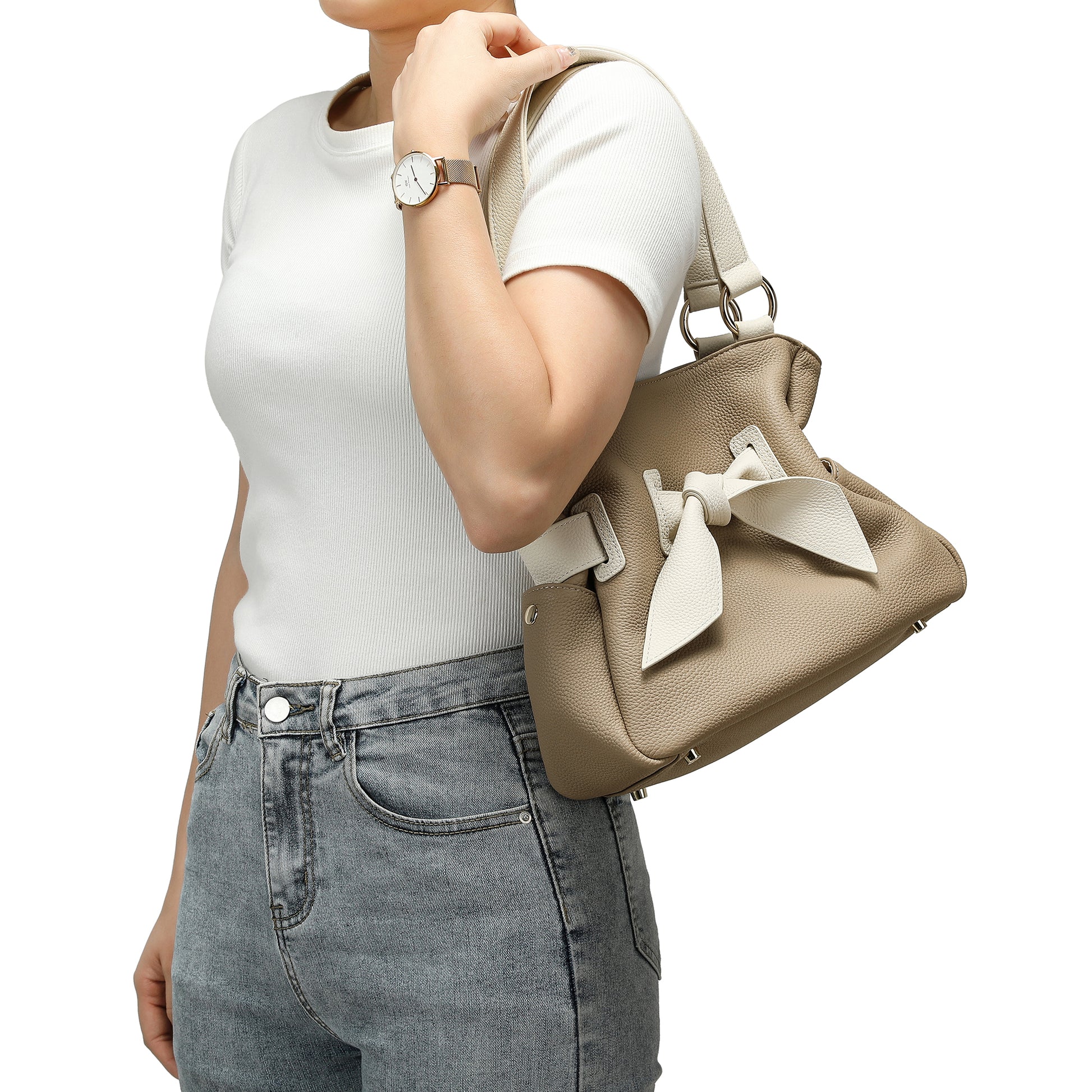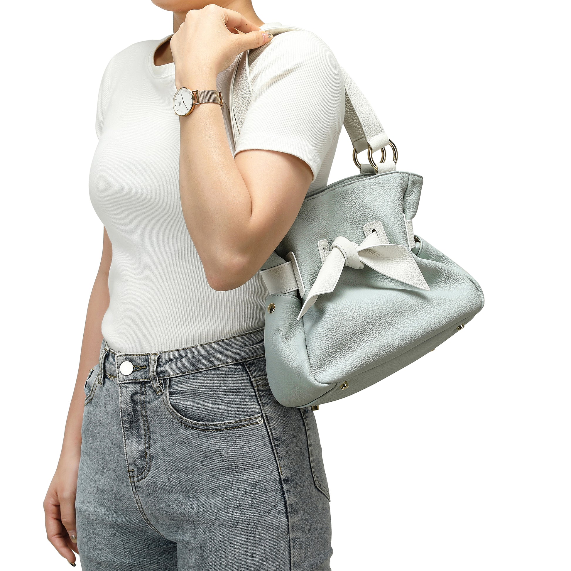 Full-Grain Soft Leather Bow Bag
