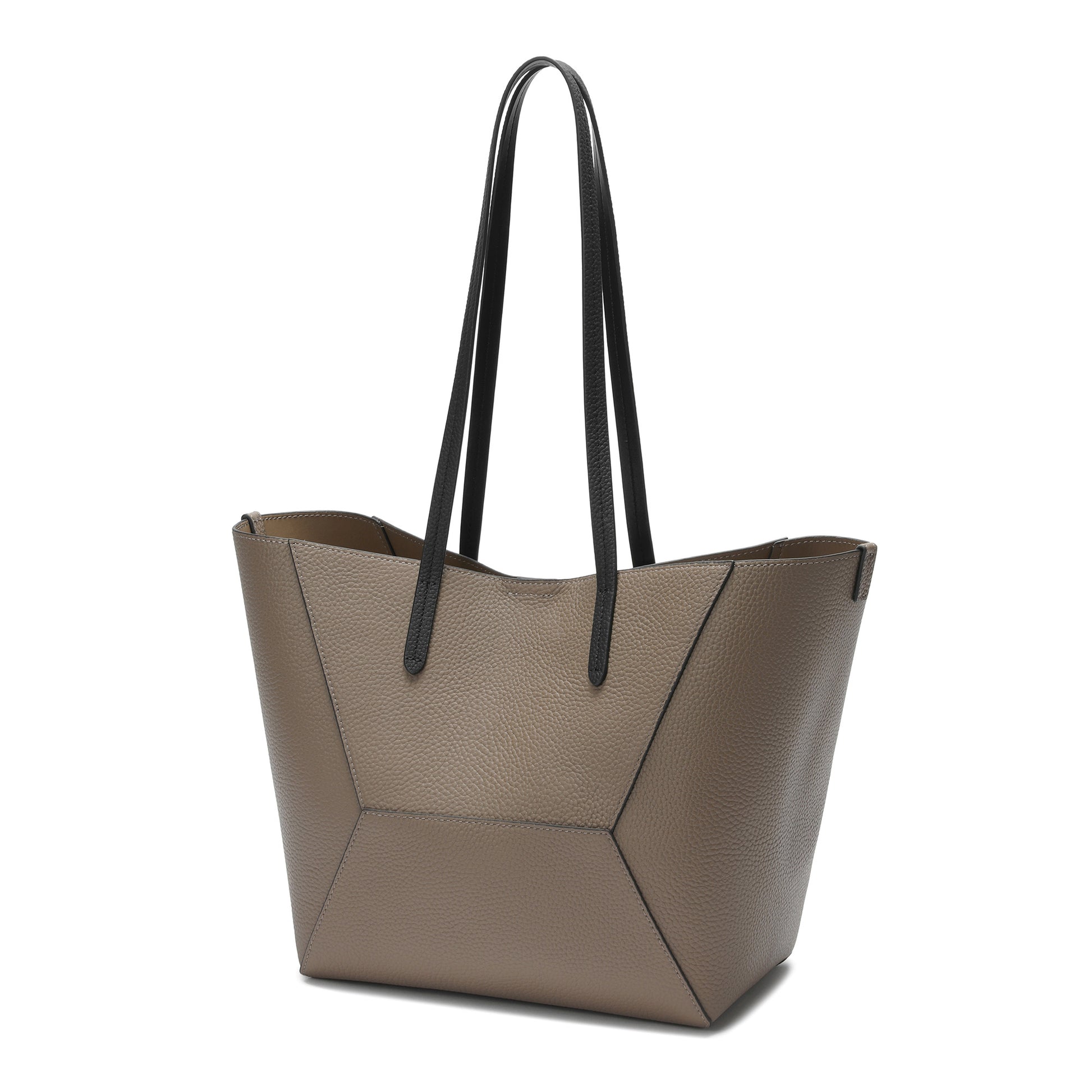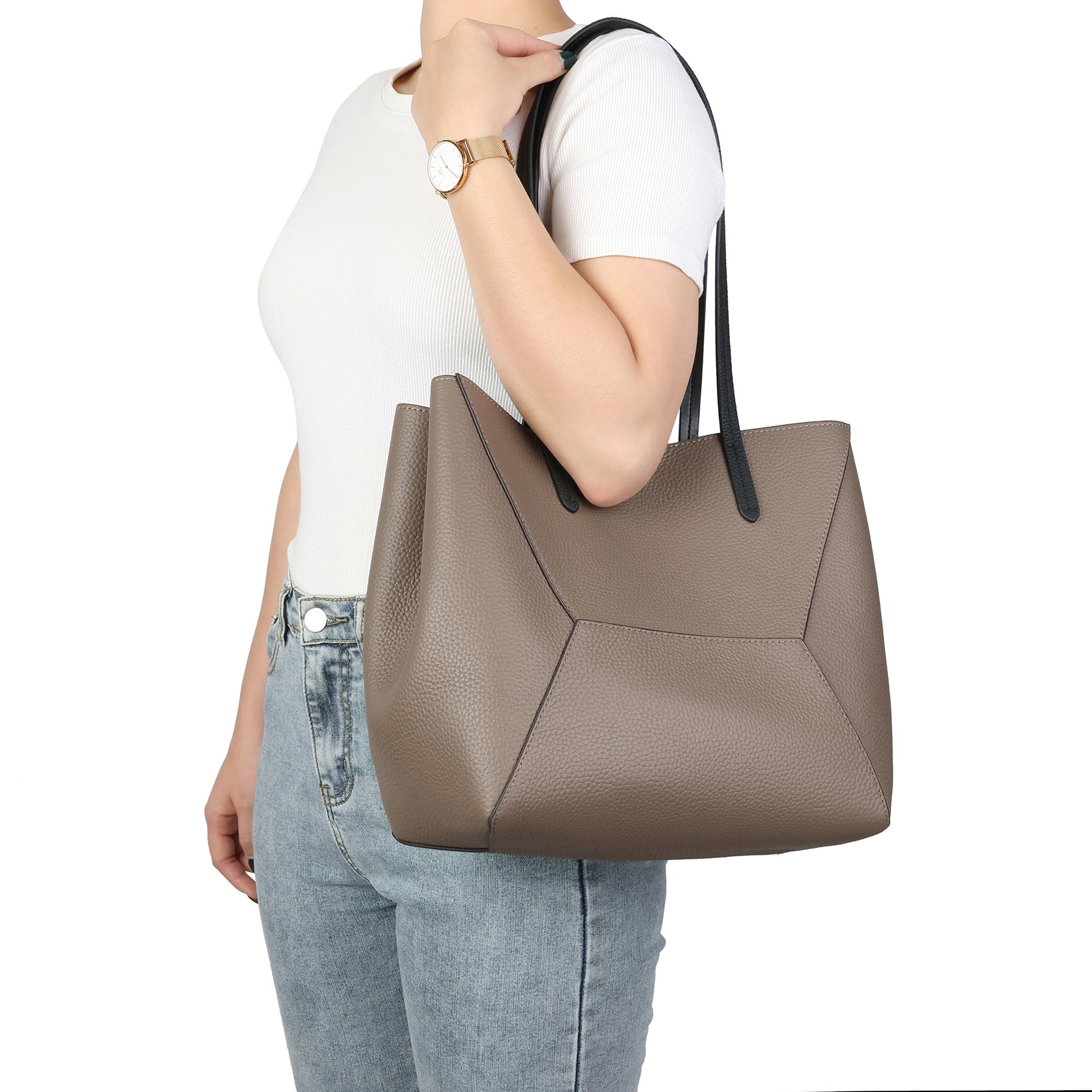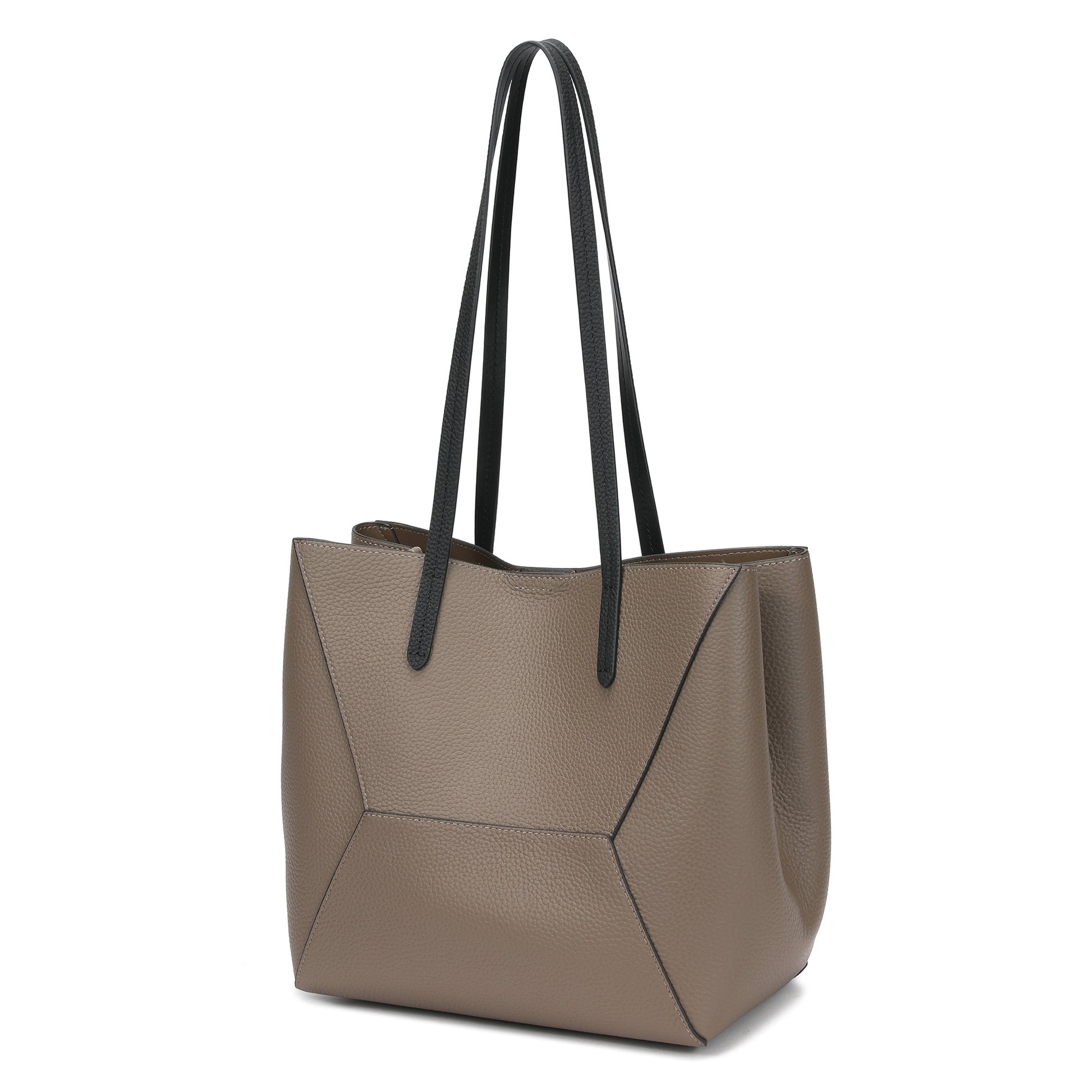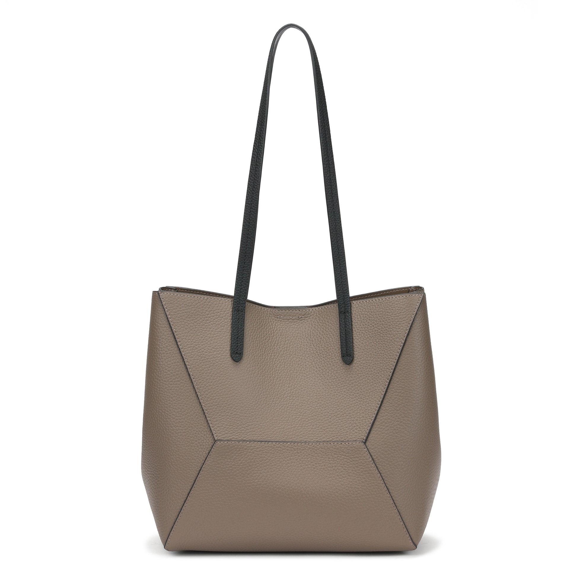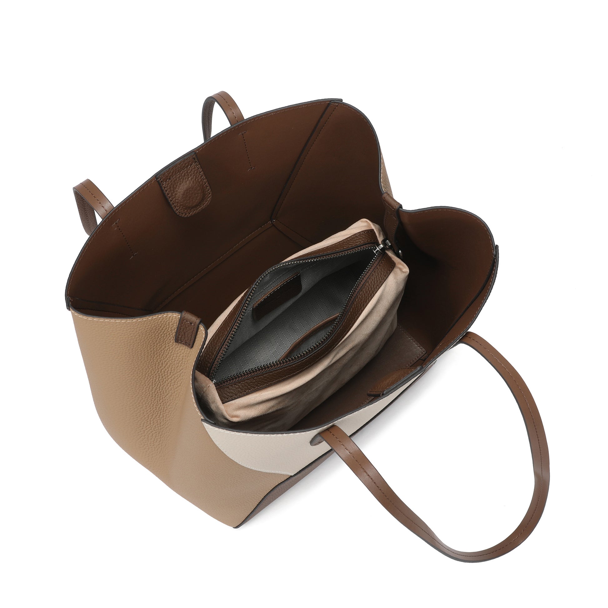 Crafted from premium textured leather, the unique geometric color-block design in neutral tones adds a contemporary flair, making it an effortless complement to any outfit. Available in multi-tone and khaki, this tote offers versatility to suit your style preferences. The bag features long shoulder straps for comfortable wear, whether you're heading to work or running errands.