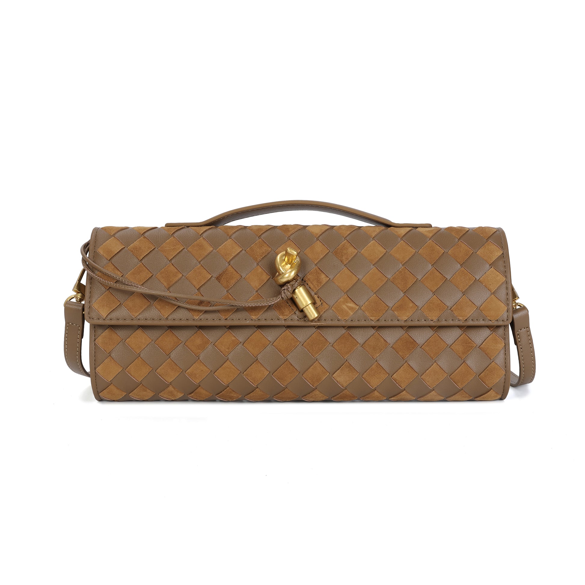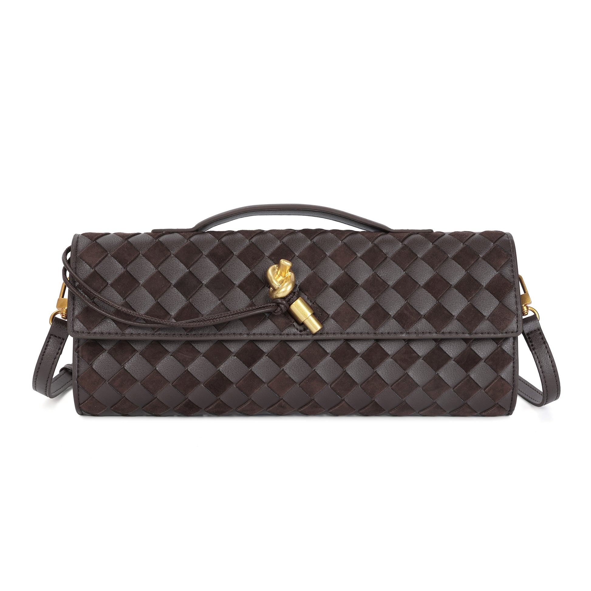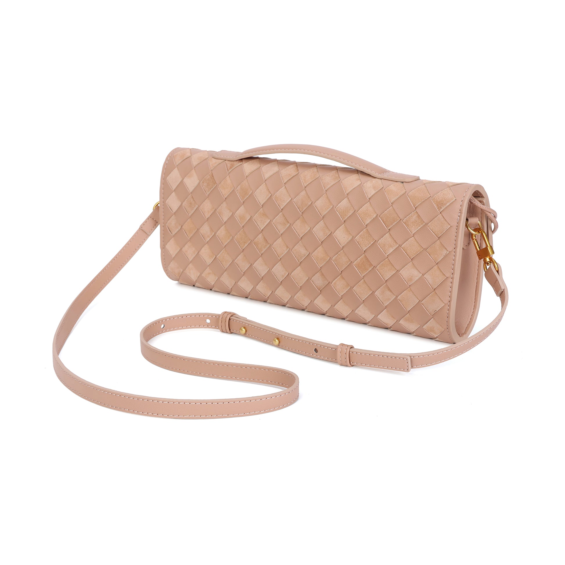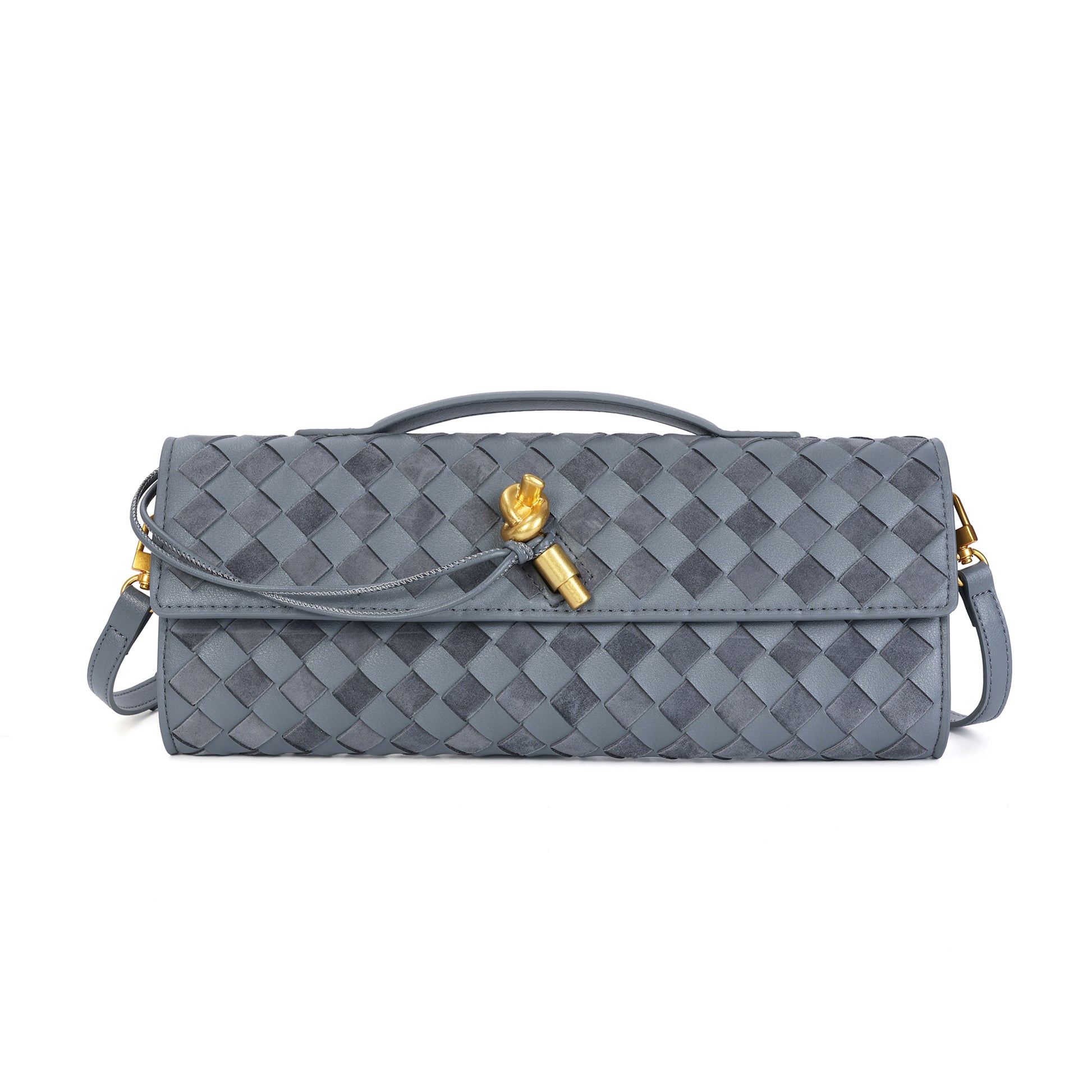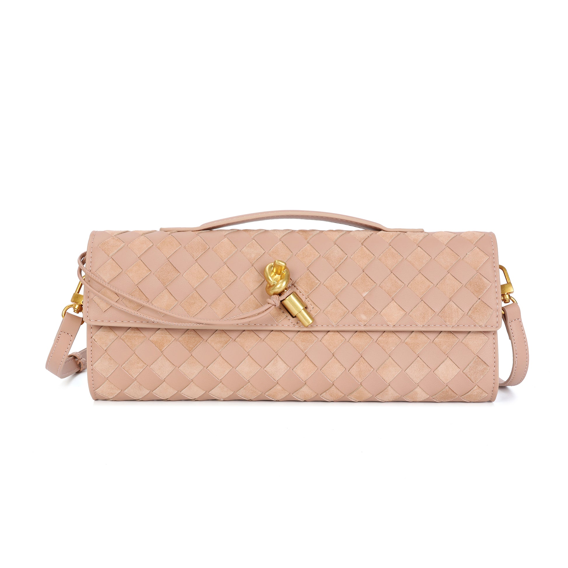 Introducing our stunning all hand-woven leather clutch, a truly eye-catching accessory that will ensure you stand out wherever you go. Meticulously crafted with intricate weaving, this clutch combines artistry with sophistication, making it a standout piece for any occasion. Its timeless design exudes luxury, while its versatility adds even more appeal. The clutch comes with an adjustable and removable shoulder strap, offering the option to wear it comfortably over your shoulder or carry it as a sleek, handheld clutch. Inside, you'll find a convenient open pocket, perfect for storing small essentials with easy access. Whether you're attending a special event or enjoying a casual outing, this beautifully woven clutch effortlessly elevates your look. The combination of expert craftsmanship, functional design, and stylish flexibility makes this bag a must-have for those who appreciate both fashion and practicality.