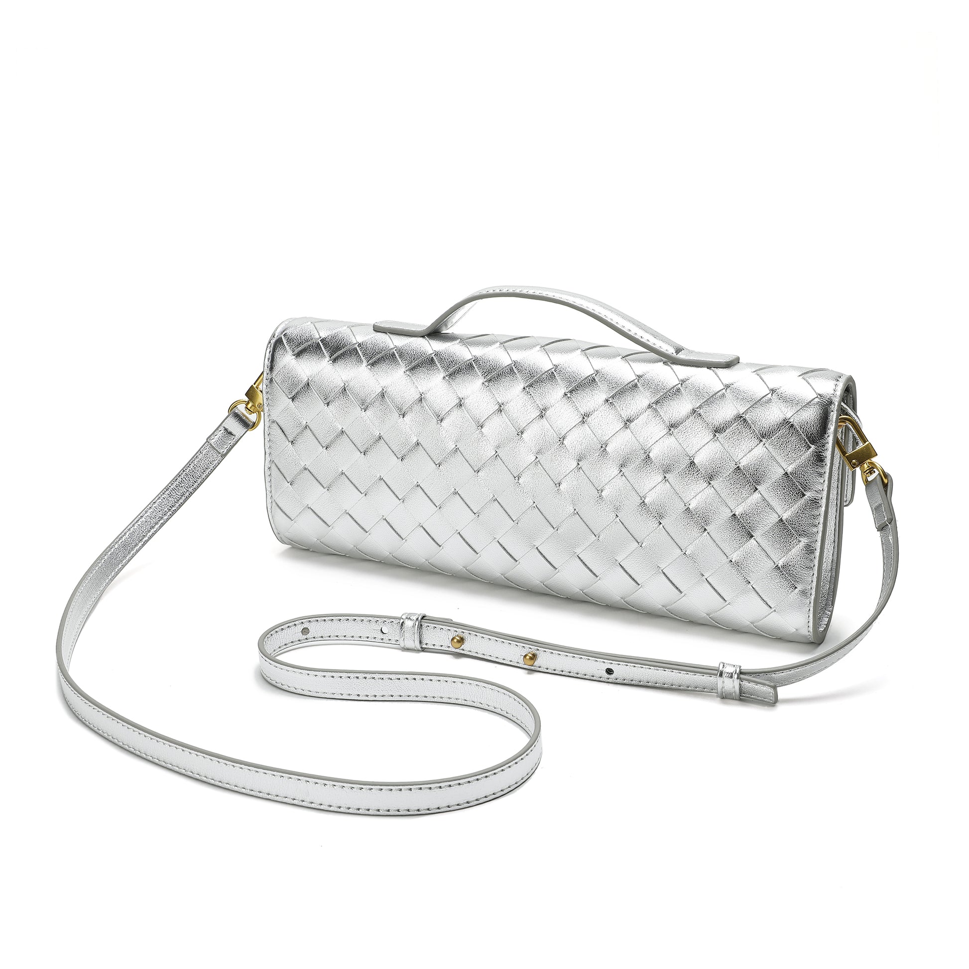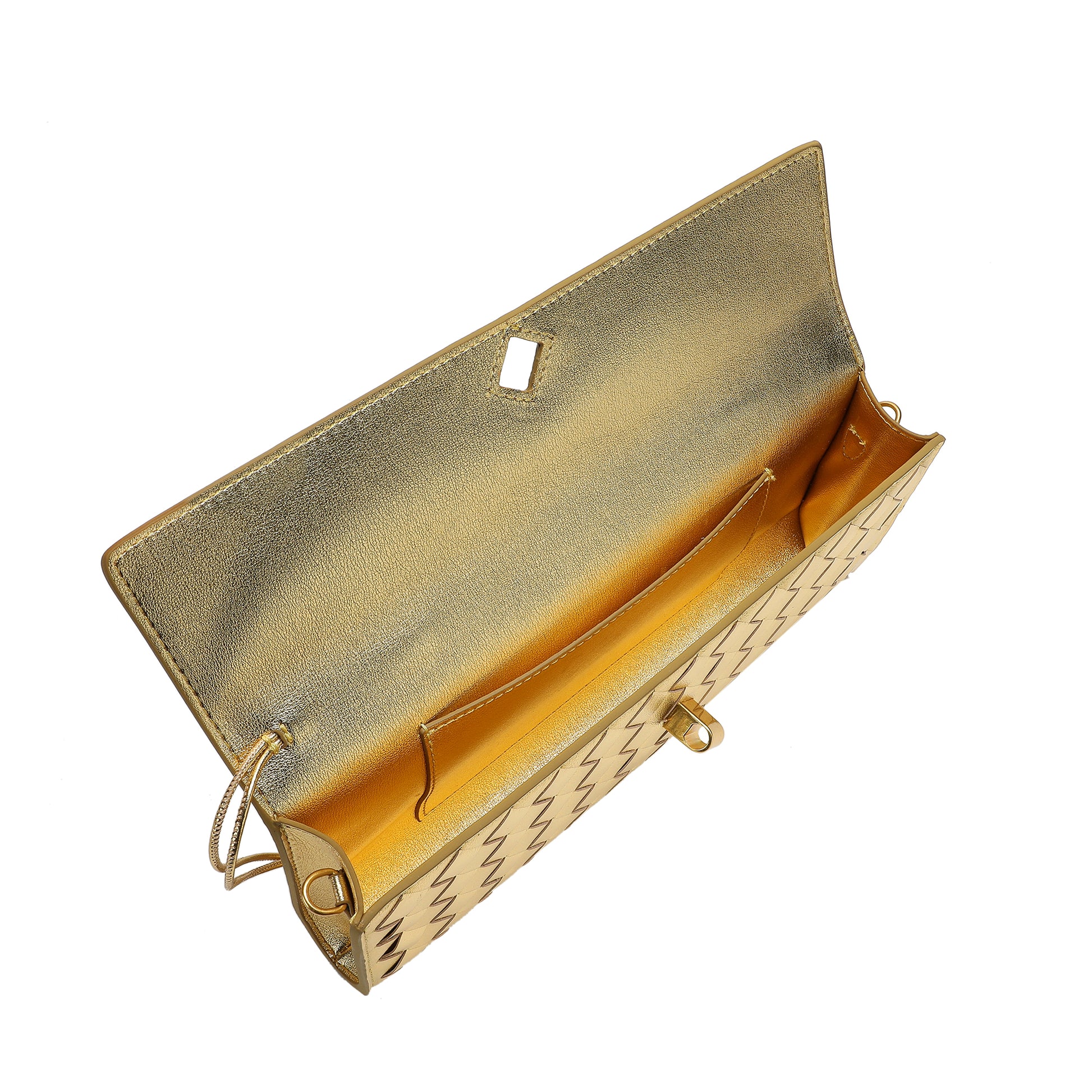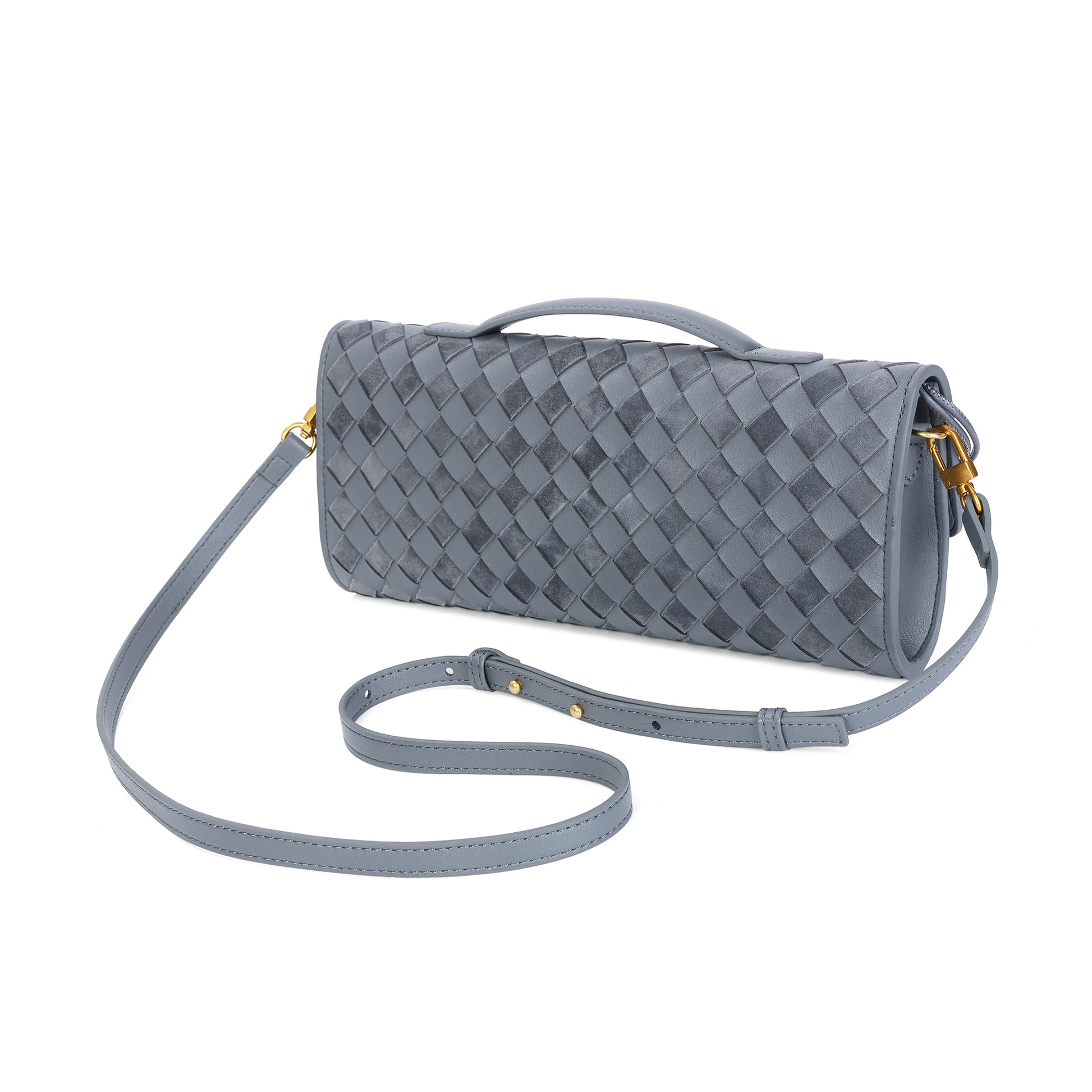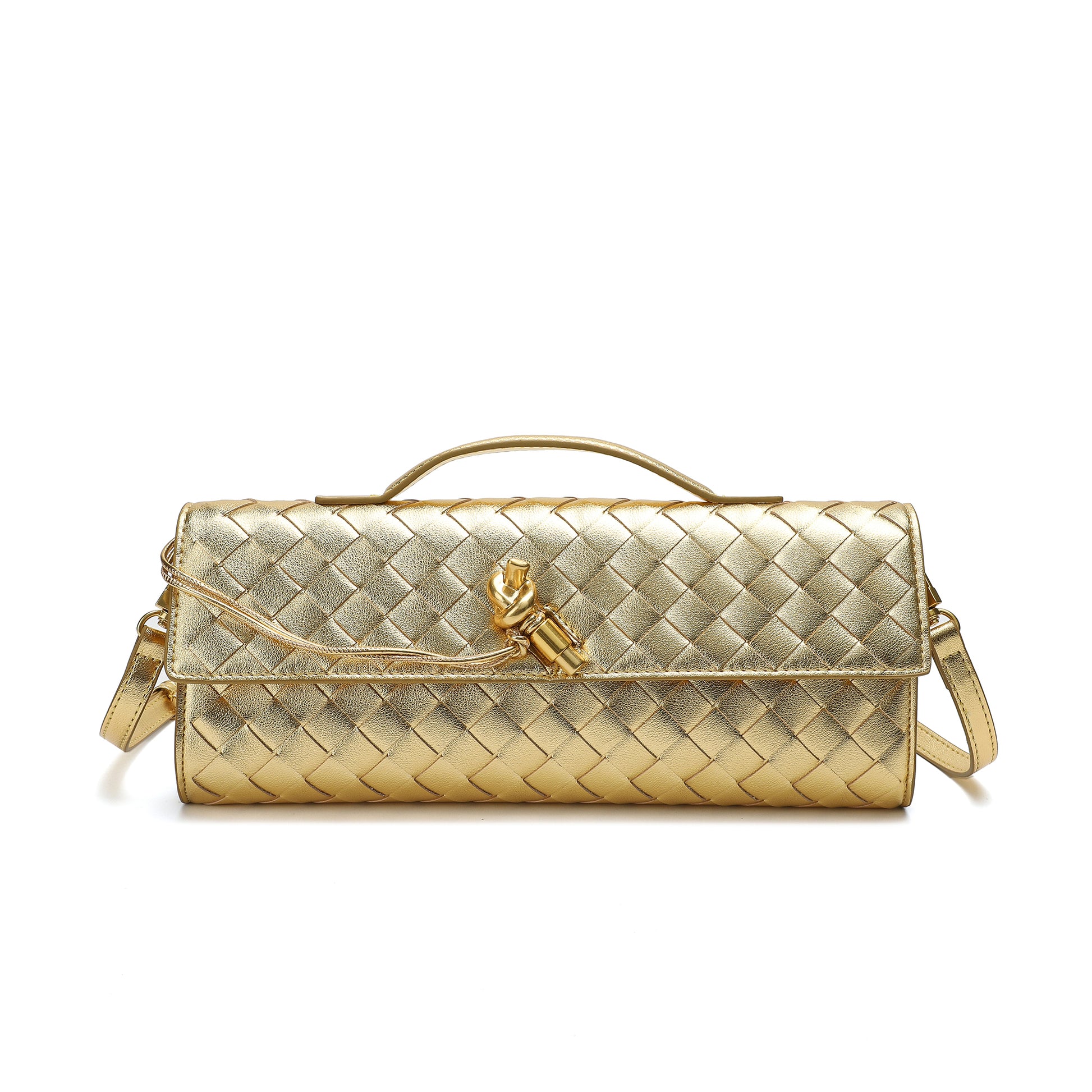 Introducing our stunning all hand-woven leather clutch, a truly eye-catching accessory that will ensure you stand out wherever you go. Meticulously crafted with intricate weaving, this clutch combines artistry with sophistication, making it a standout piece for any occasion. Its timeless design exudes luxury, while its versatility adds even more appeal. The clutch comes with an adjustable and removable shoulder strap, offering the option to wear it comfortably over your shoulder or carry it as a sleek, handheld clutch. Inside, you'll find a convenient open pocket, perfect for storing small essentials with easy access. Whether you're attending a special event or enjoying a casual outing, this beautifully woven clutch effortlessly elevates your look. The combination of expert craftsmanship, functional design, and stylish flexibility makes this bag a must-have for those who appreciate both fashion and practicality.
