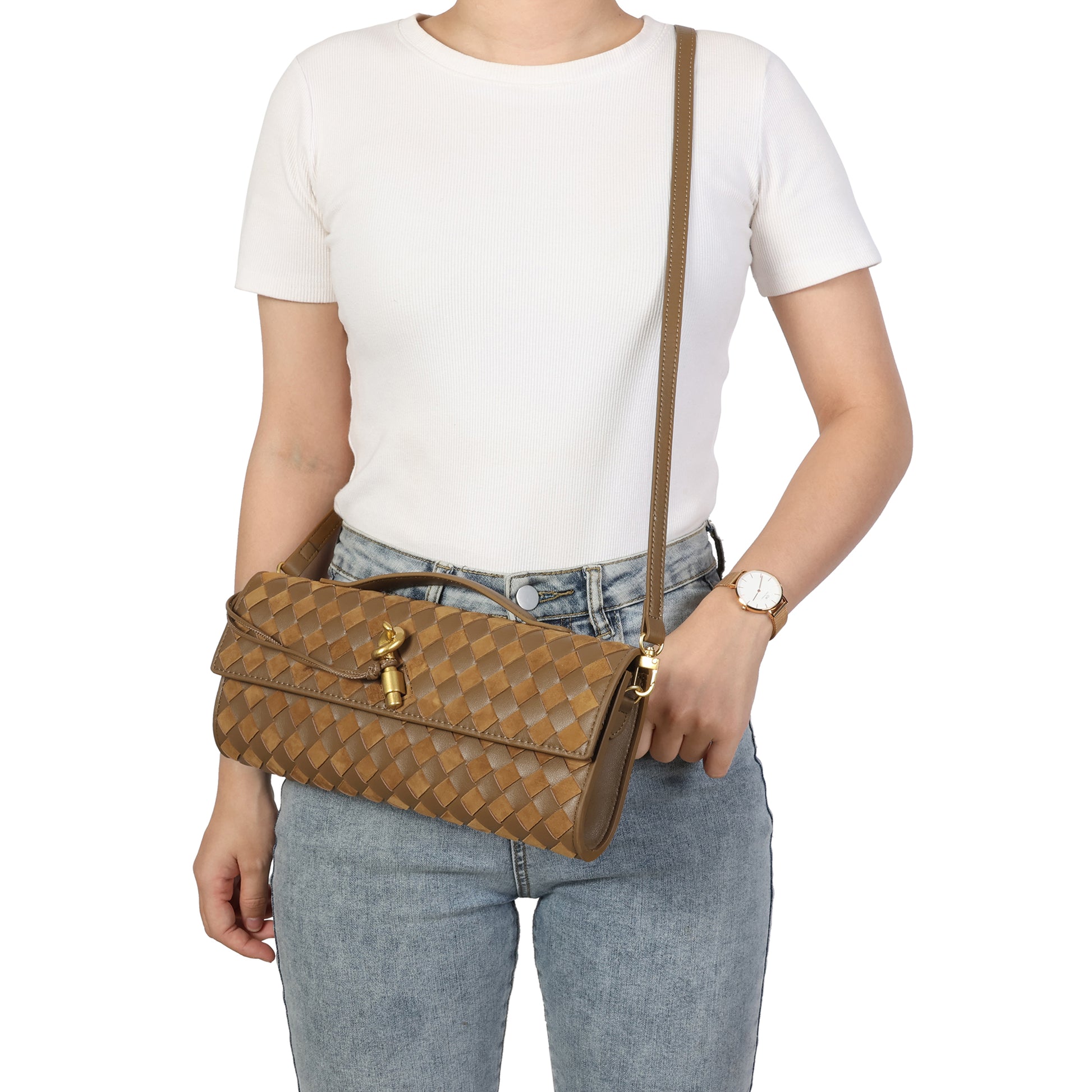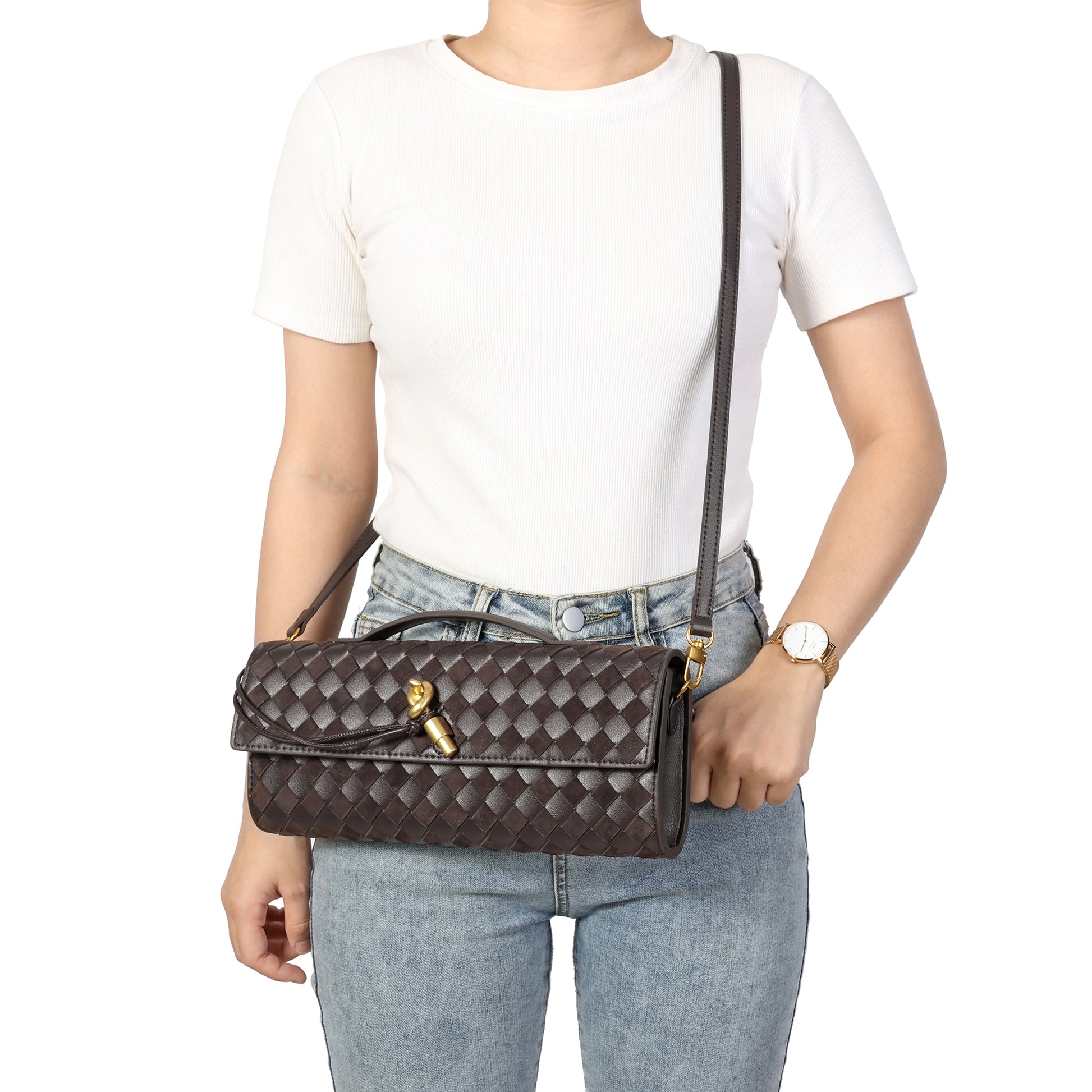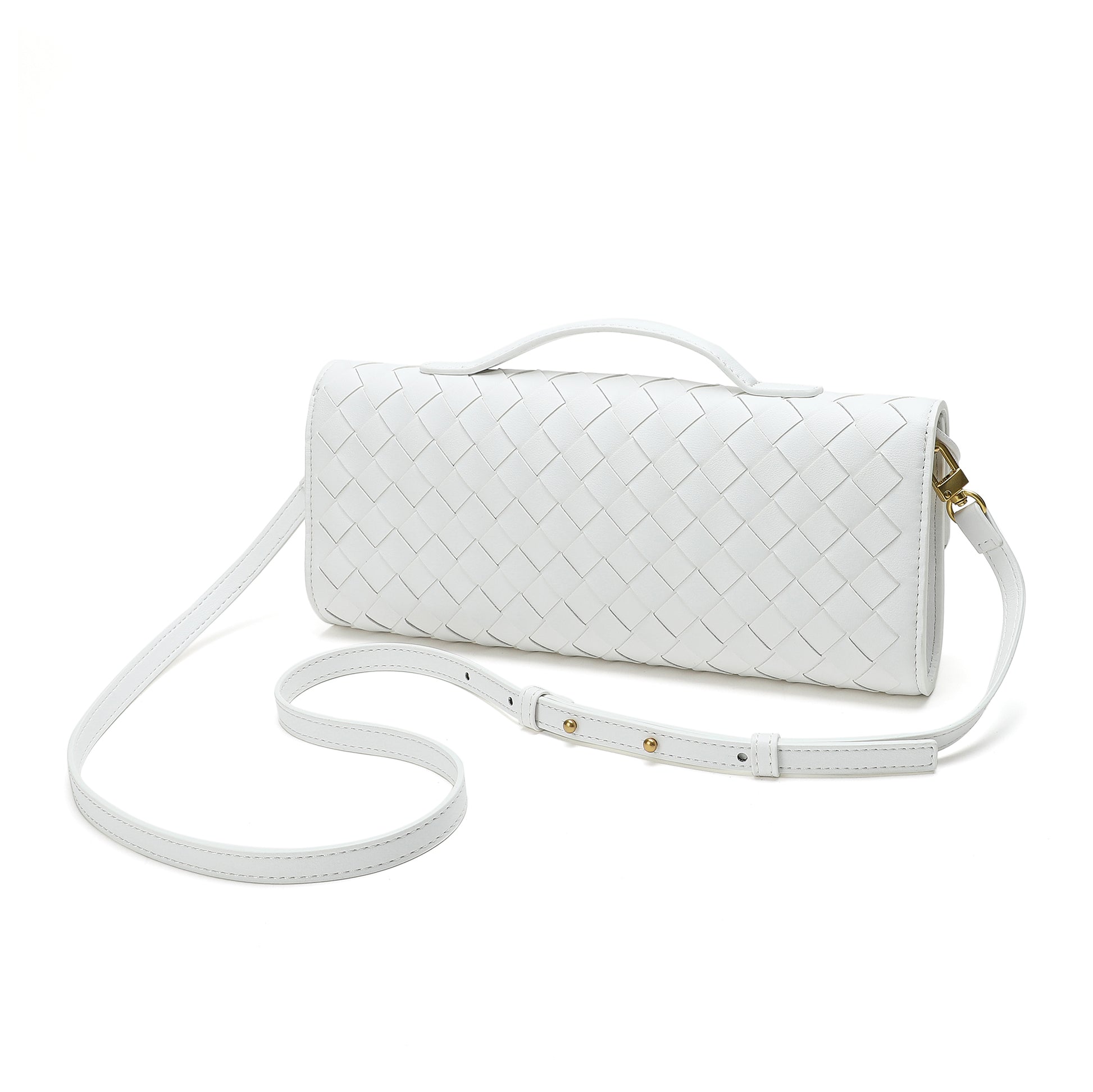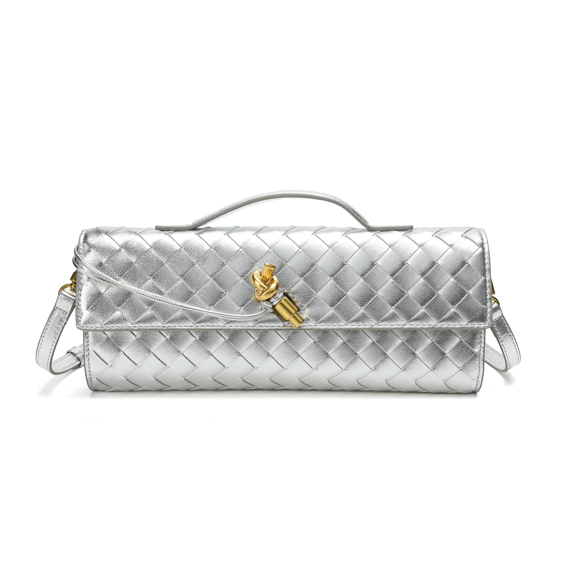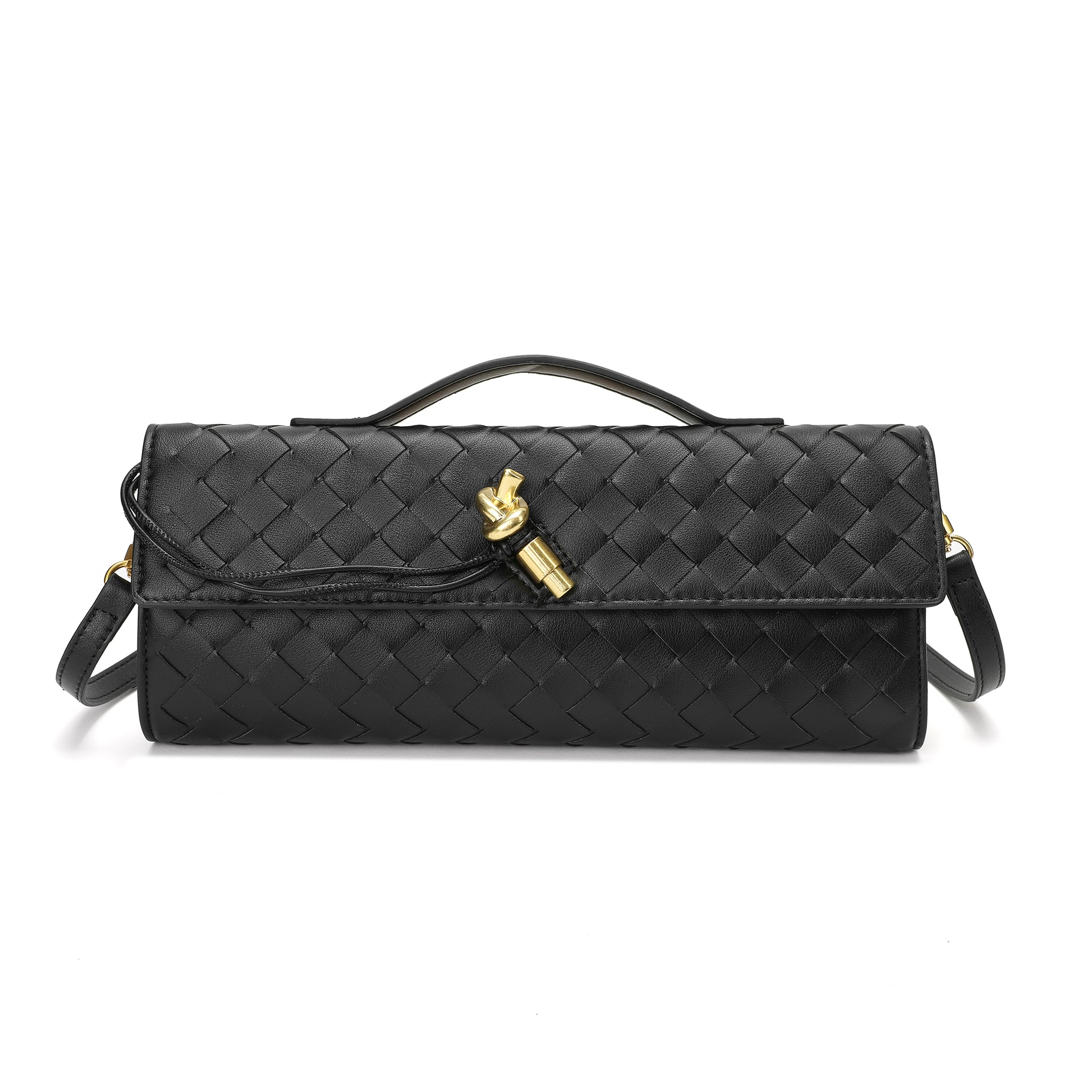 Introducing our stunning all hand-woven leather clutch, a truly eye-catching accessory that will ensure you stand out wherever you go. Meticulously crafted with intricate weaving, this clutch combines artistry with sophistication, making it a standout piece for any occasion. Its timeless design exudes luxury, while its versatility adds even more appeal. The clutch comes with an adjustable and removable shoulder strap, offering the option to wear it comfortably over your shoulder or carry it as a sleek, handheld clutch. Inside, you'll find a convenient open pocket, perfect for storing small essentials with easy access. Whether you're attending a special event or enjoying a casual outing, this beautifully woven clutch effortlessly elevates your look. The combination of expert craftsmanship, functional design, and stylish flexibility makes this bag a must-have for those who appreciate both fashion and practicality.