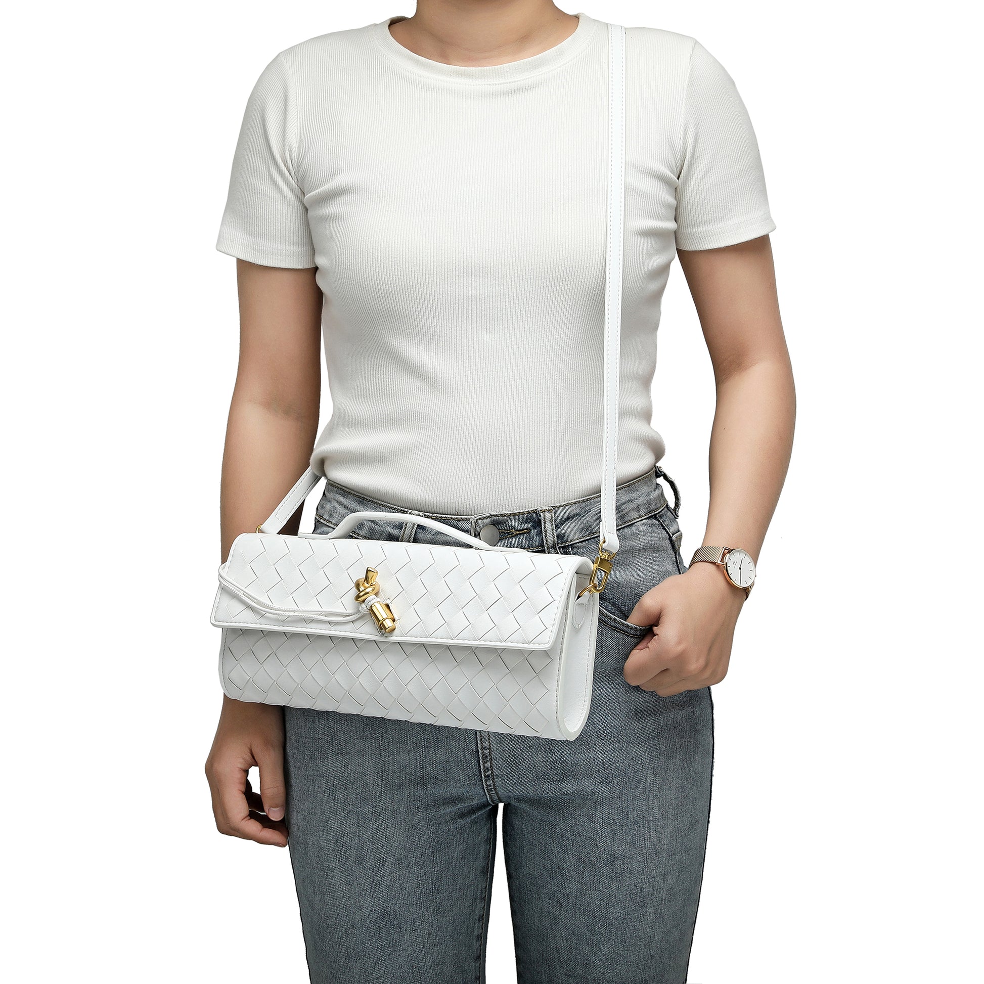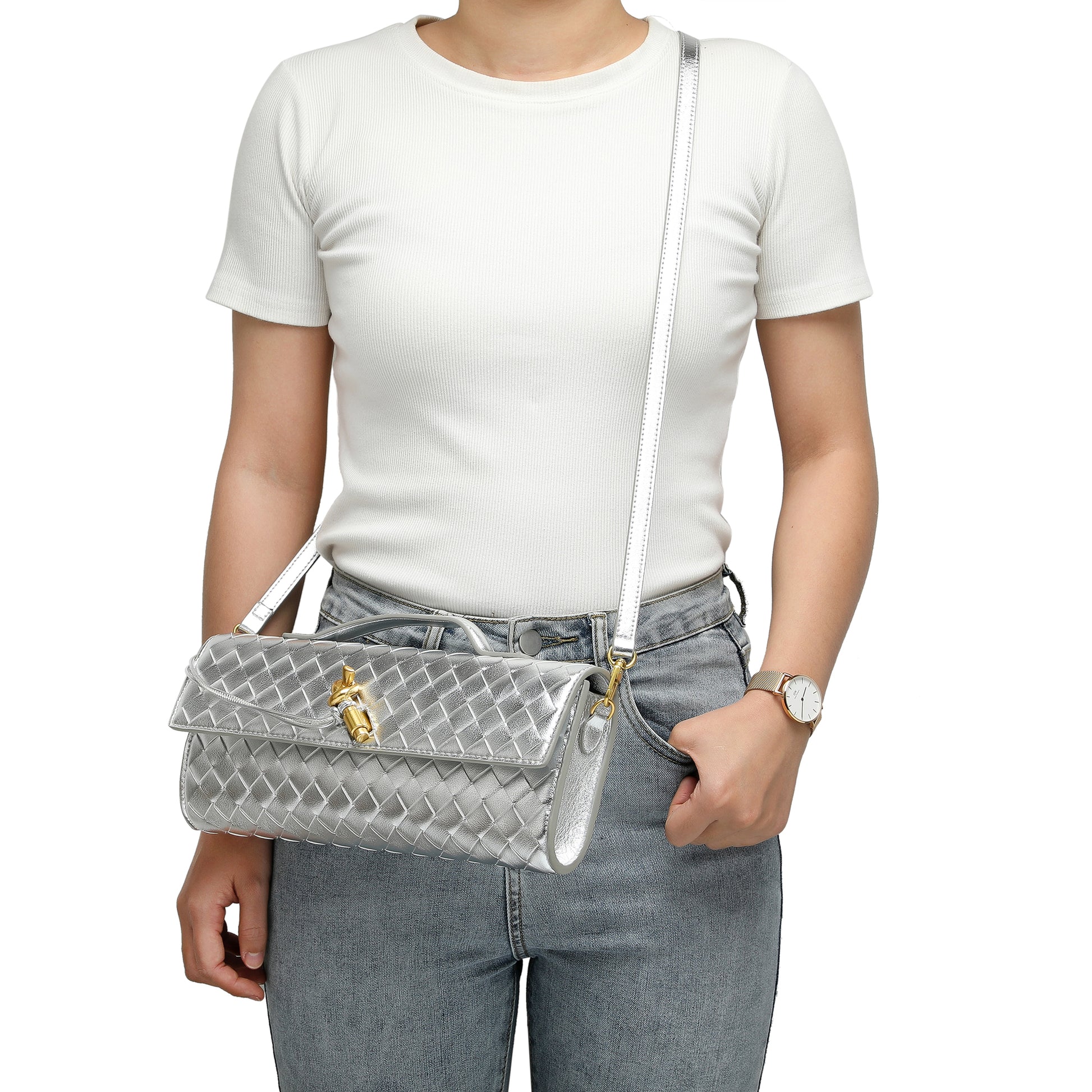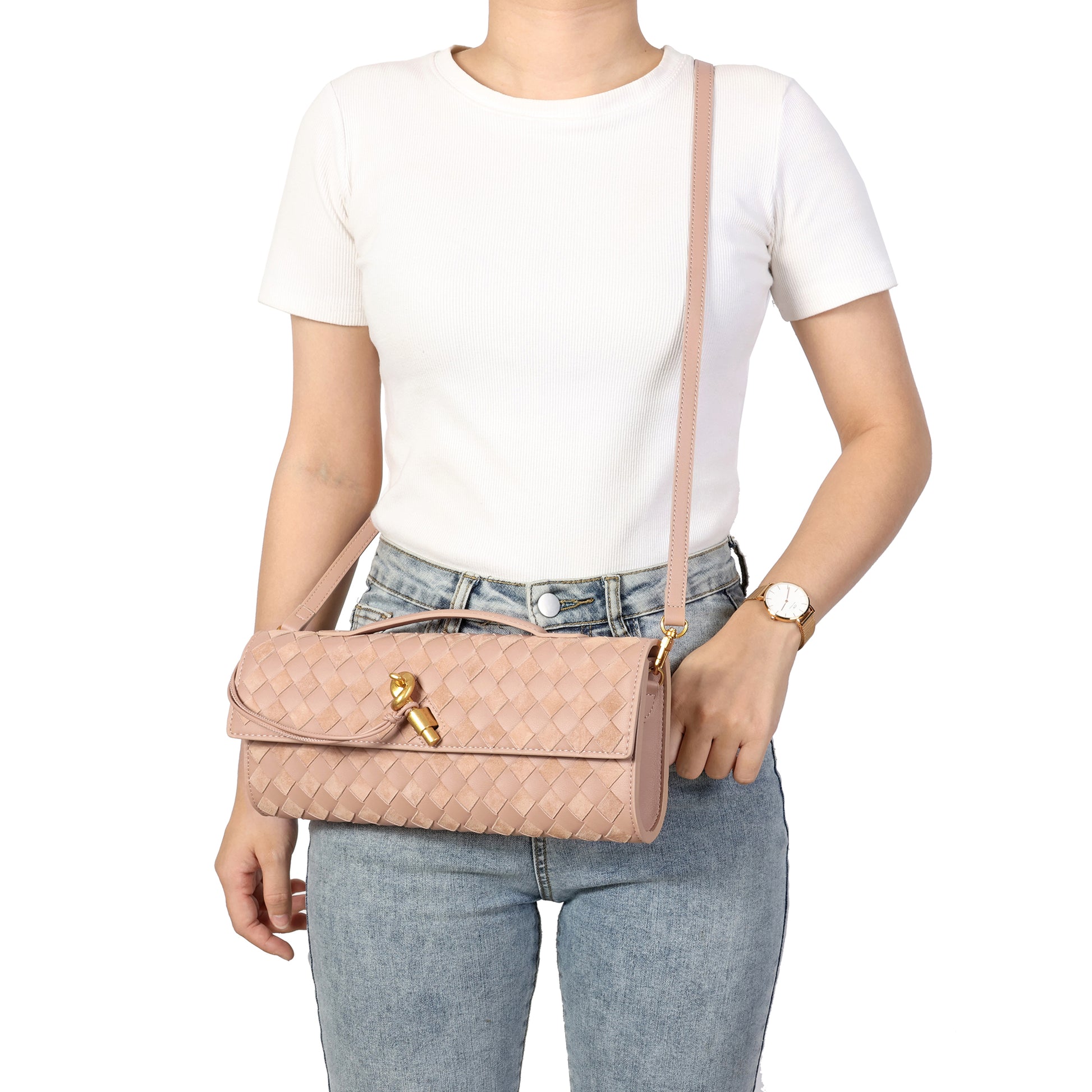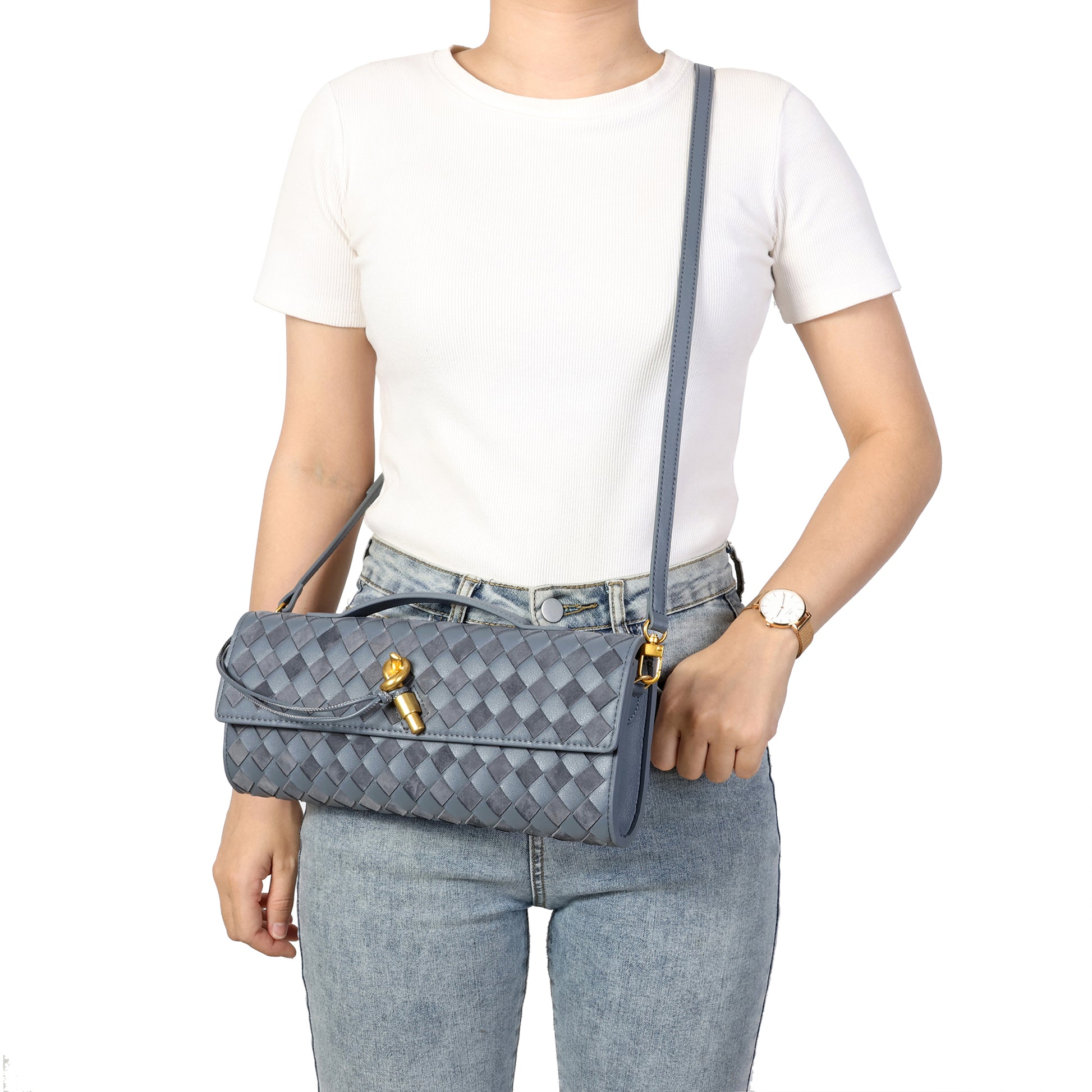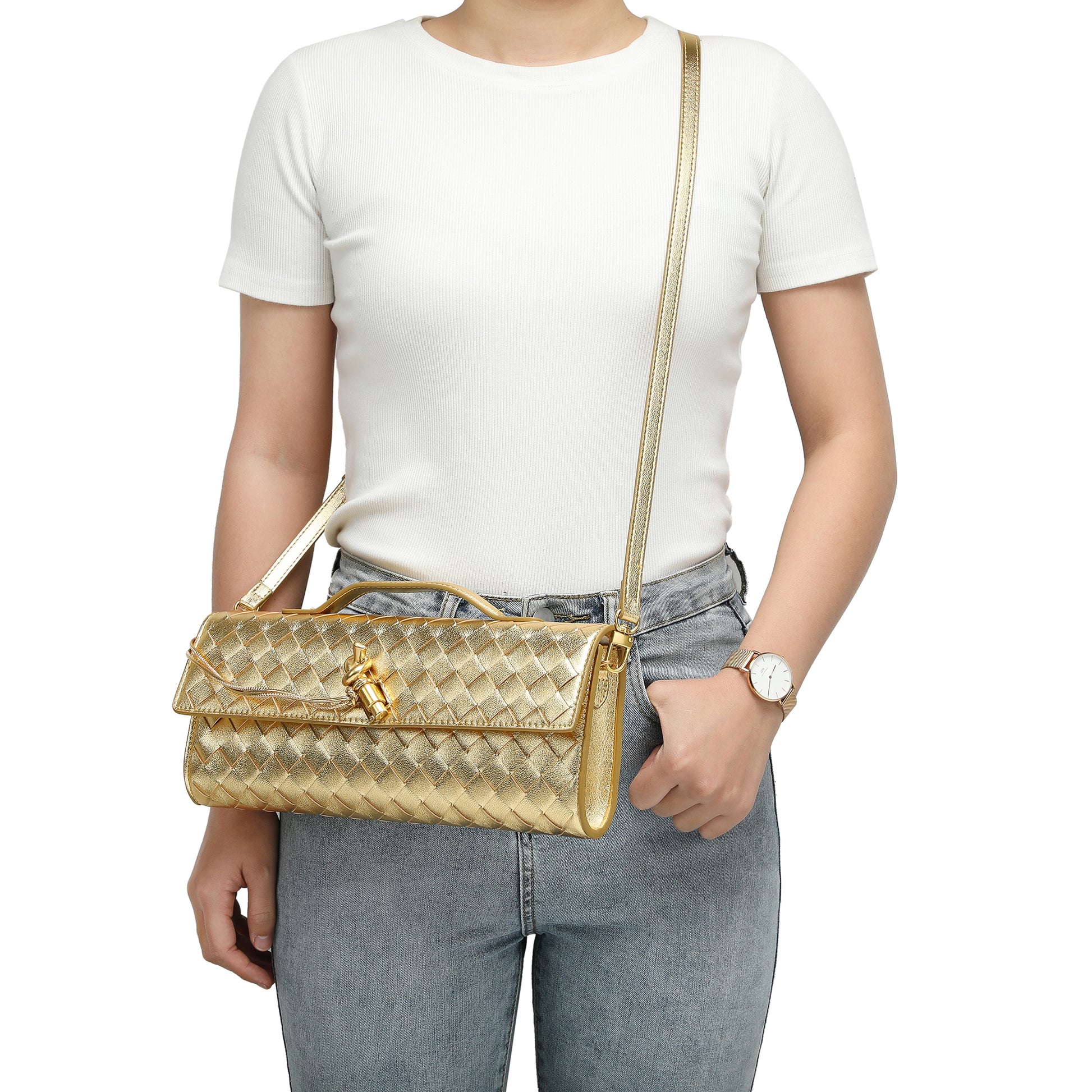 Introducing our stunning all hand-woven leather clutch, a truly eye-catching accessory that will ensure you stand out wherever you go. Meticulously crafted with intricate weaving, this clutch combines artistry with sophistication, making it a standout piece for any occasion. Its timeless design exudes luxury, while its versatility adds even more appeal. The clutch comes with an adjustable and removable shoulder strap, offering the option to wear it comfortably over your shoulder or carry it as a sleek, handheld clutch. Inside, you'll find a convenient open pocket, perfect for storing small essentials with easy access. Whether you're attending a special event or enjoying a casual outing, this beautifully woven clutch effortlessly elevates your look. The combination of expert craftsmanship, functional design, and stylish flexibility makes this bag a must-have for those who appreciate both fashion and practicality.