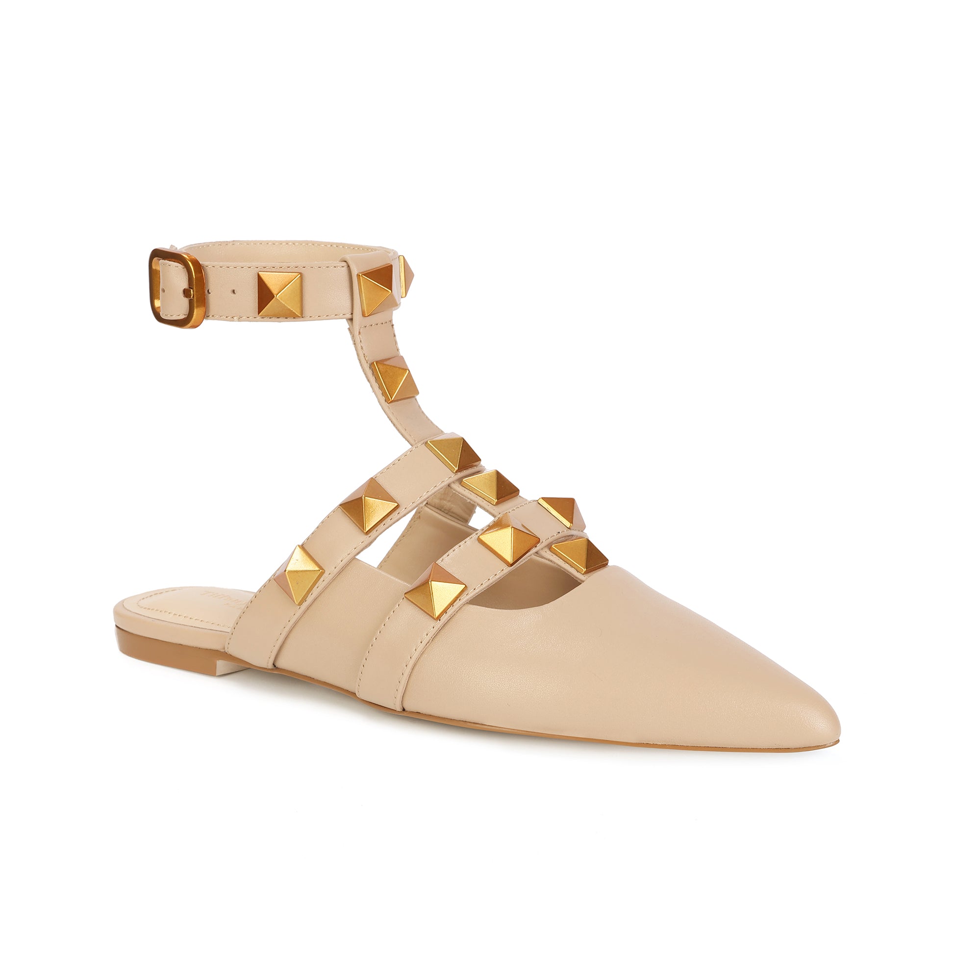 Nude Studded Leather Pointed-toe Ankle Strap Flats
