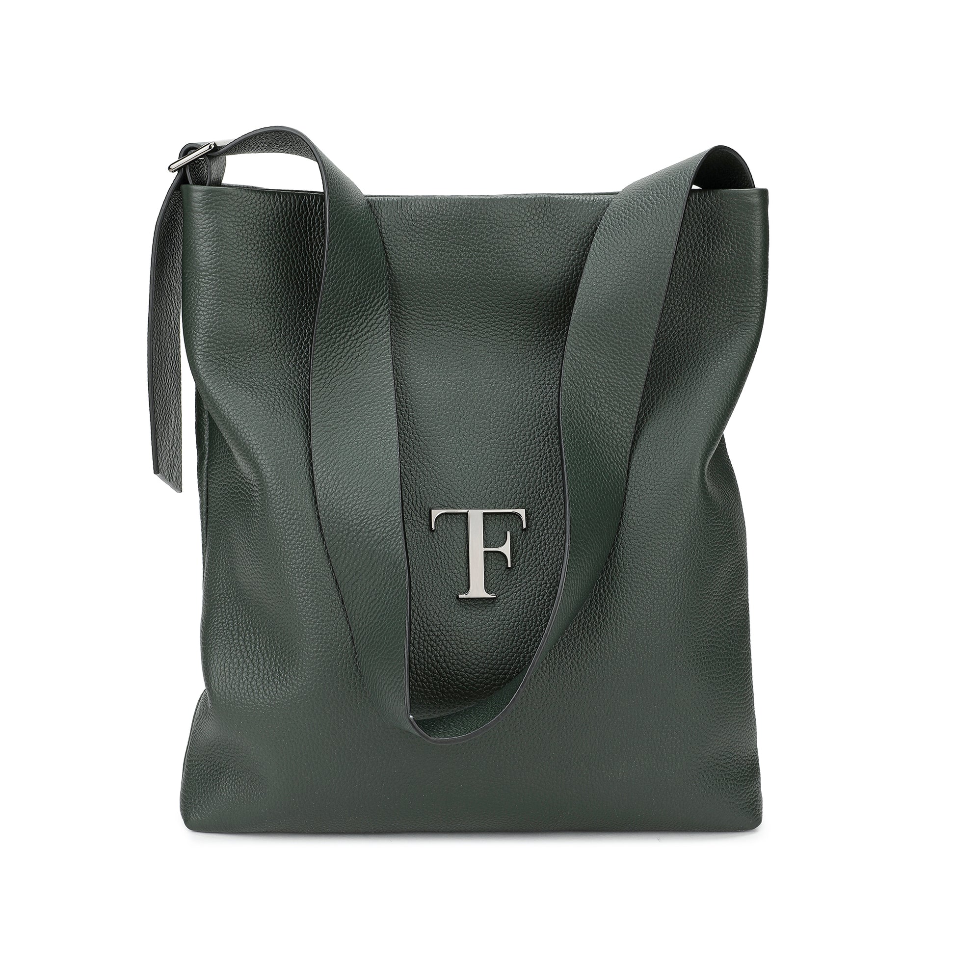 A refined everyday essential, this pebbled leather shoulder tote is designed with a soft slouchy silhouette and accented by the signature TF logo on the front. The spacious interior features multiple compartments, including a secure zip pocket, making it perfect for both work and weekend use. Finished with an adjustable wide strap for comfortable carry on the shoulder, this tote combines elegance and practicality in one timeless piece.