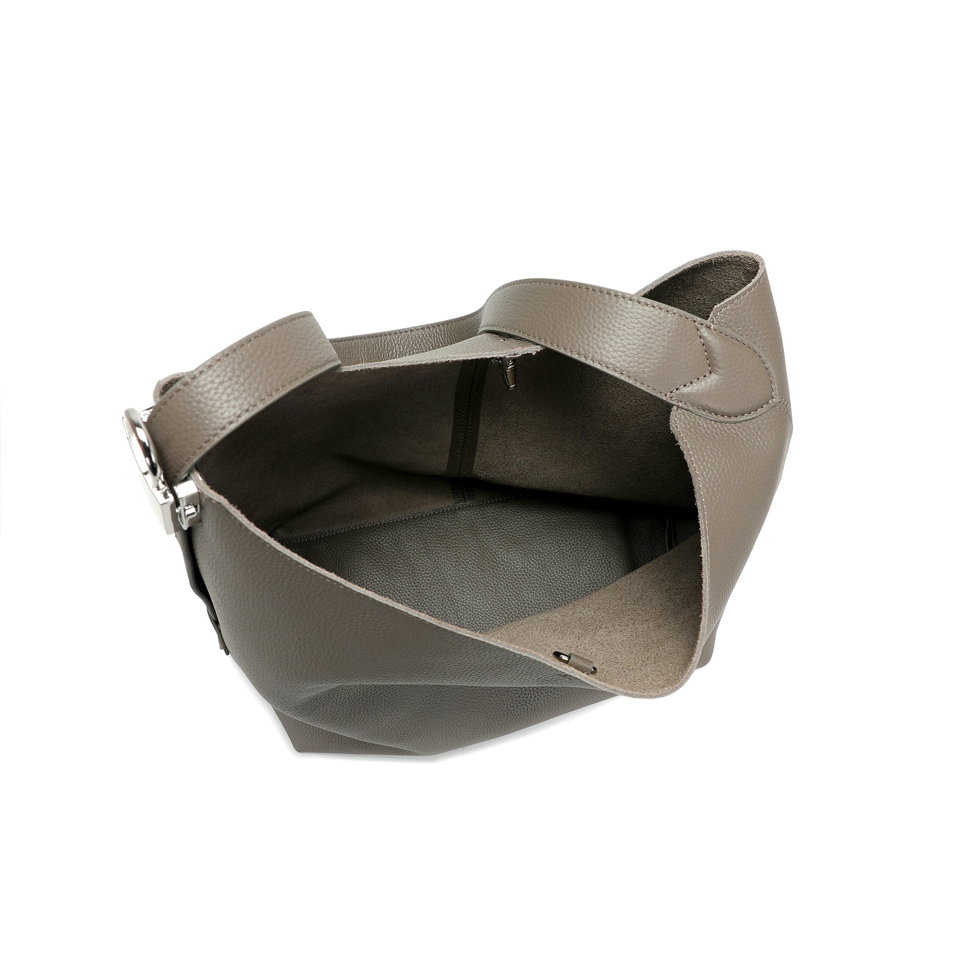 Spacious open interior with a secure zip pocket for essentials. Unlined for a natural leather finish and lightweight feel.