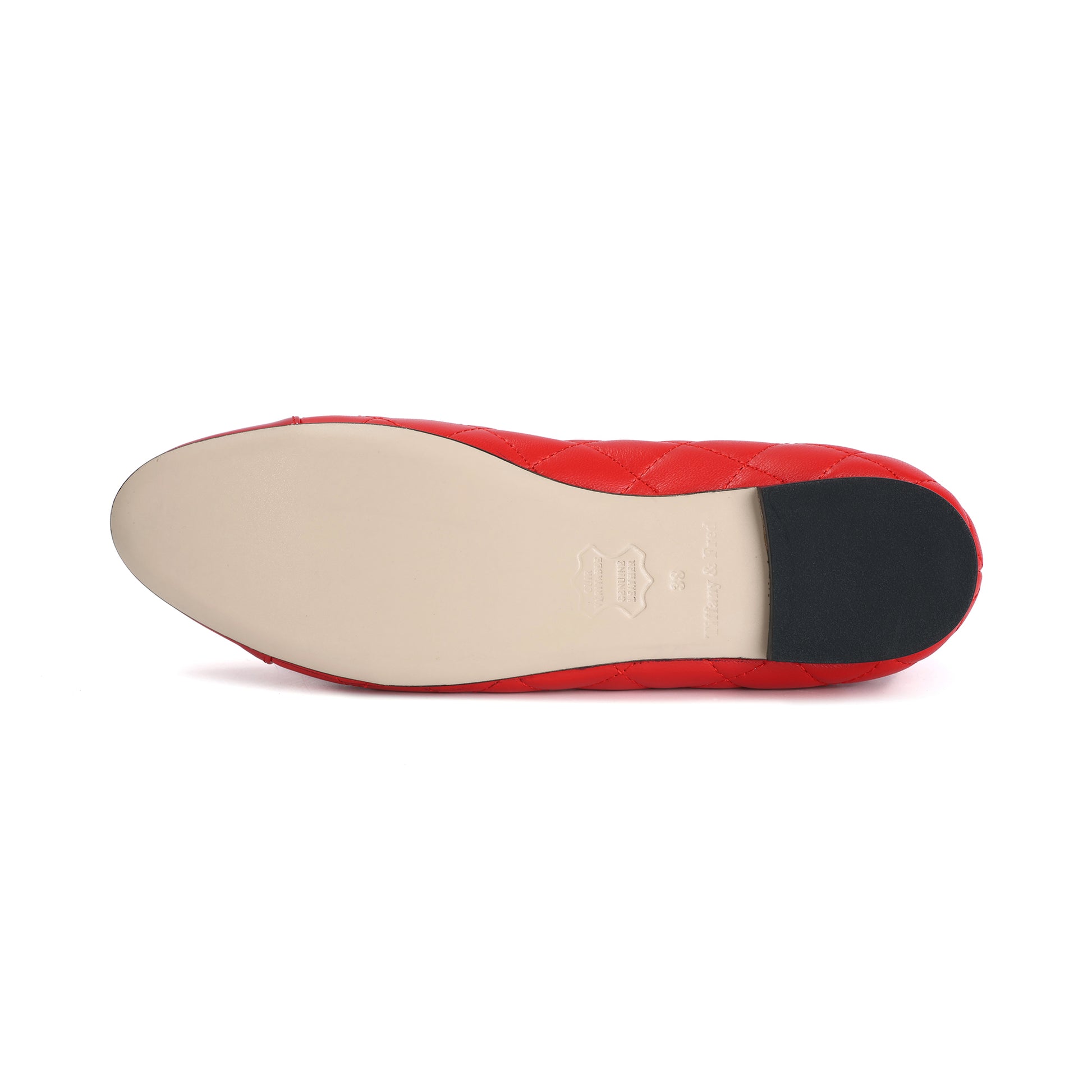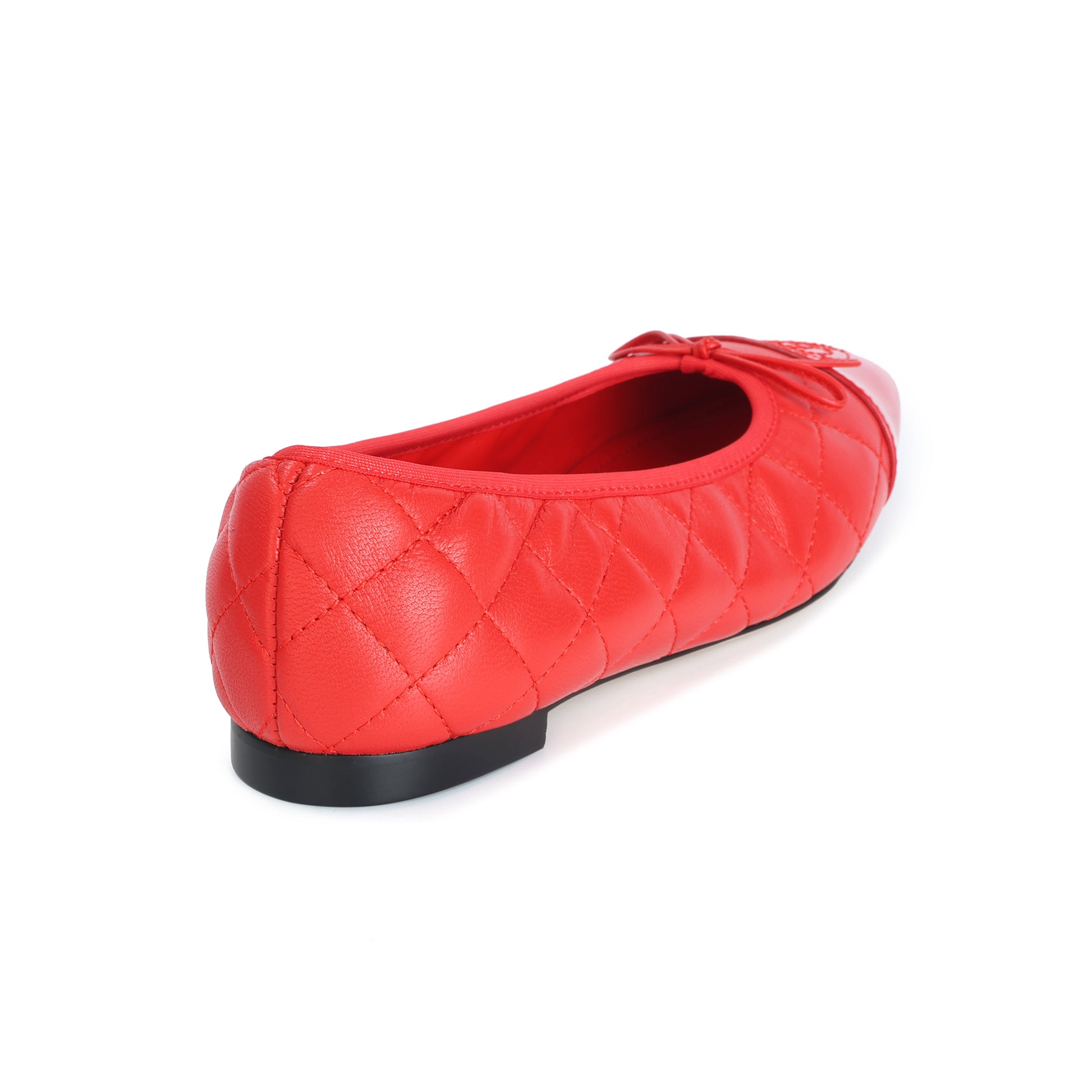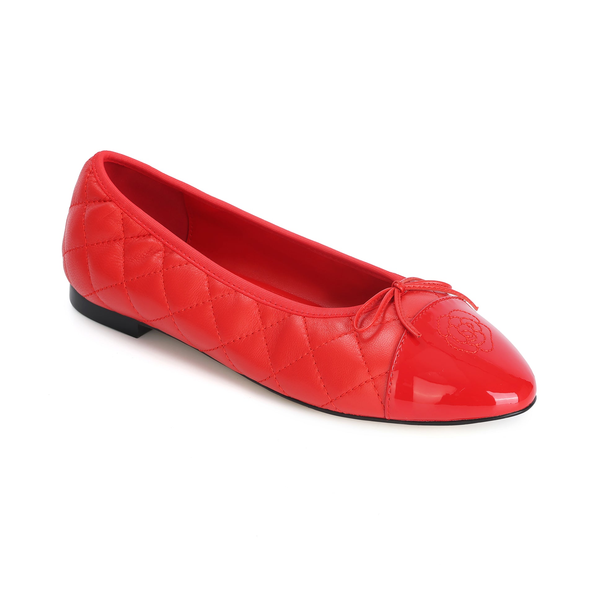 Red Quilted Leather Ballet Flats with Bow and Patent Toe Cap