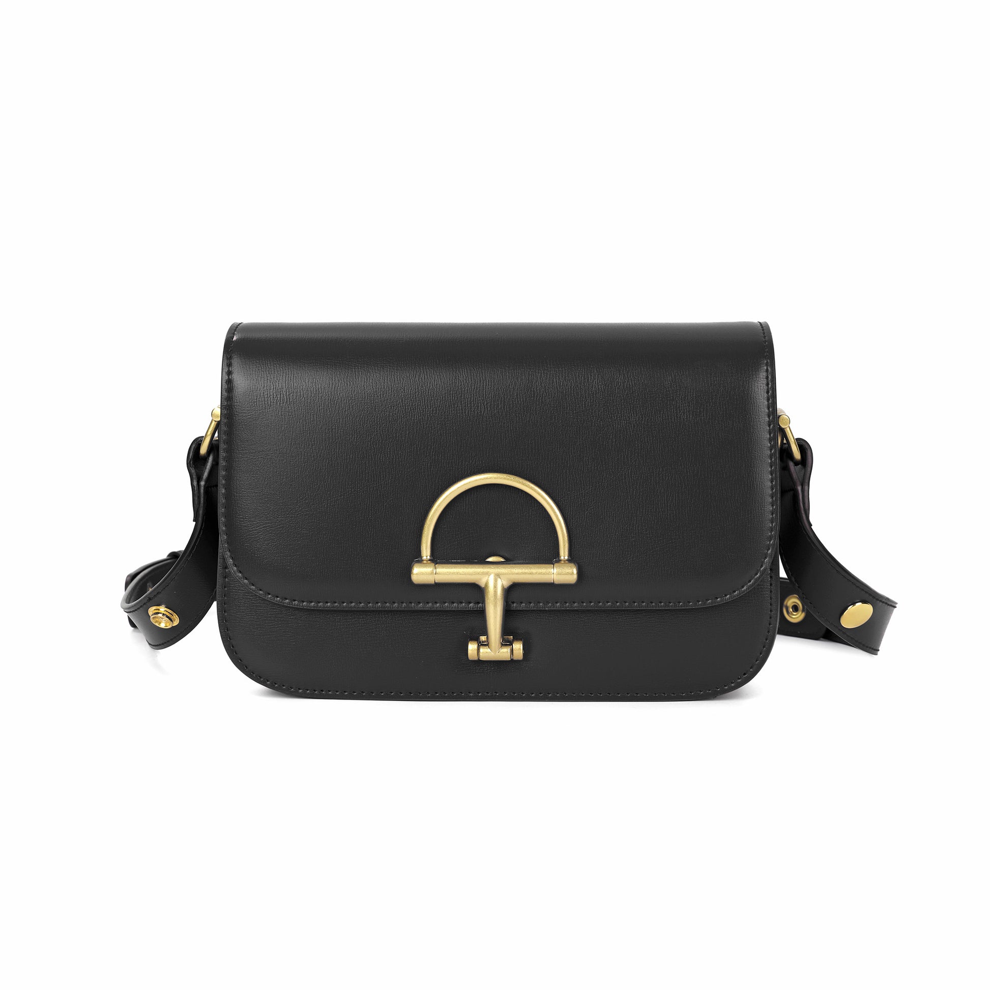 A timeless and structured crossbody bag crafted from smooth premium leather, designed to elevate everyday looks with a refined, classic edge. The standout gold-tone turn-lock hardware adds a bold yet elegant focal point, while the clean flap silhouette keeps the design polished and versatile. Finished with an adjustable leather shoulder strap, this bag transitions effortlessly from day to evening.