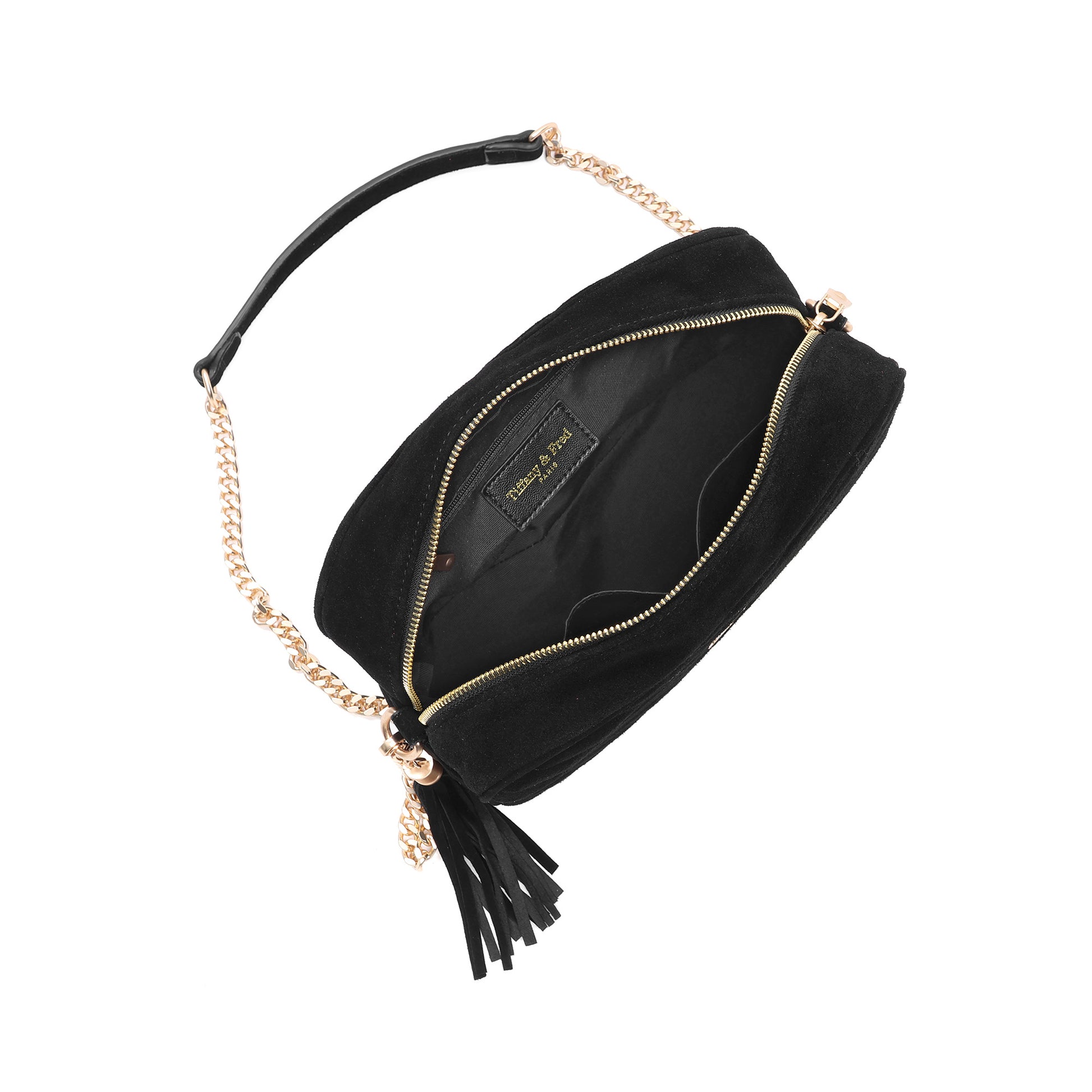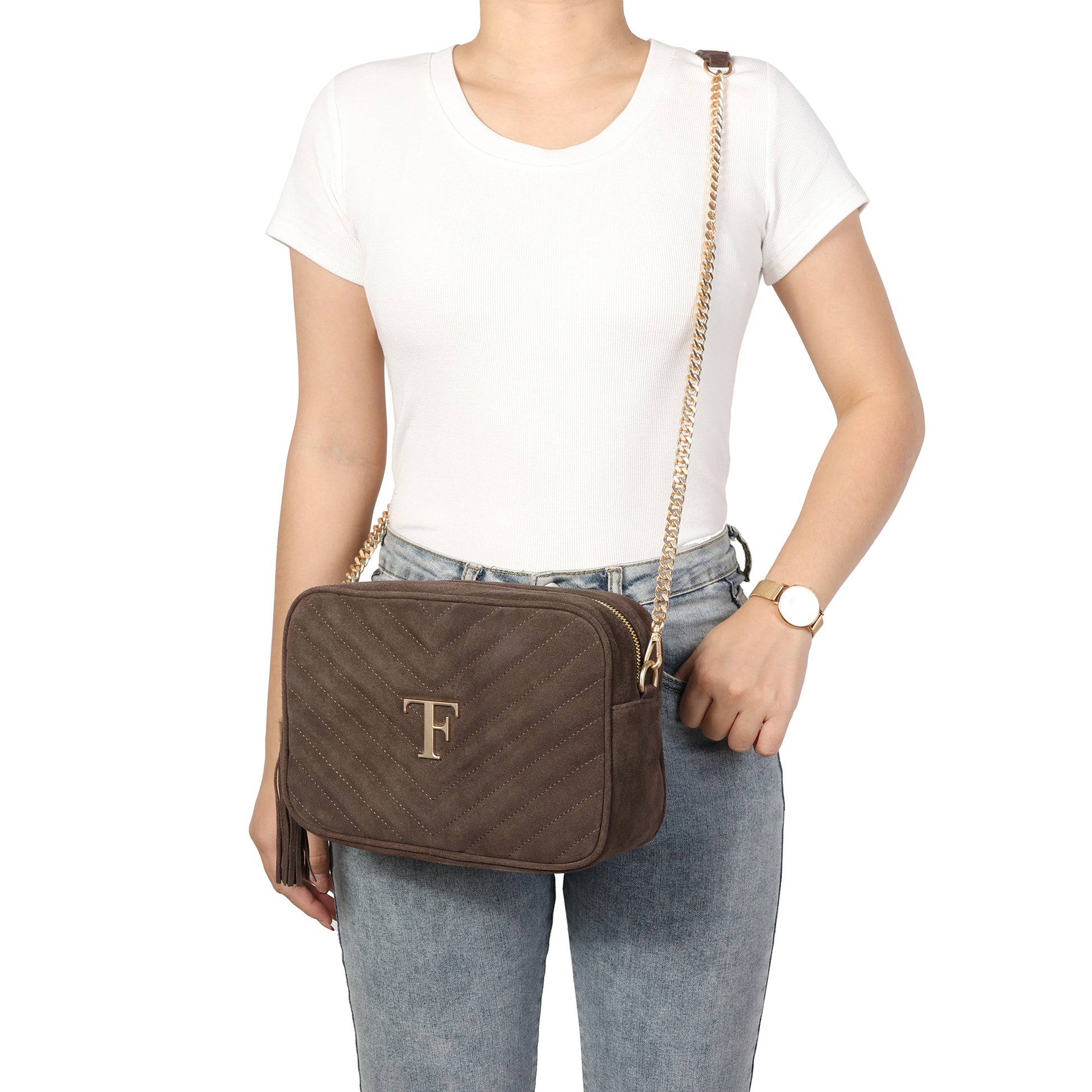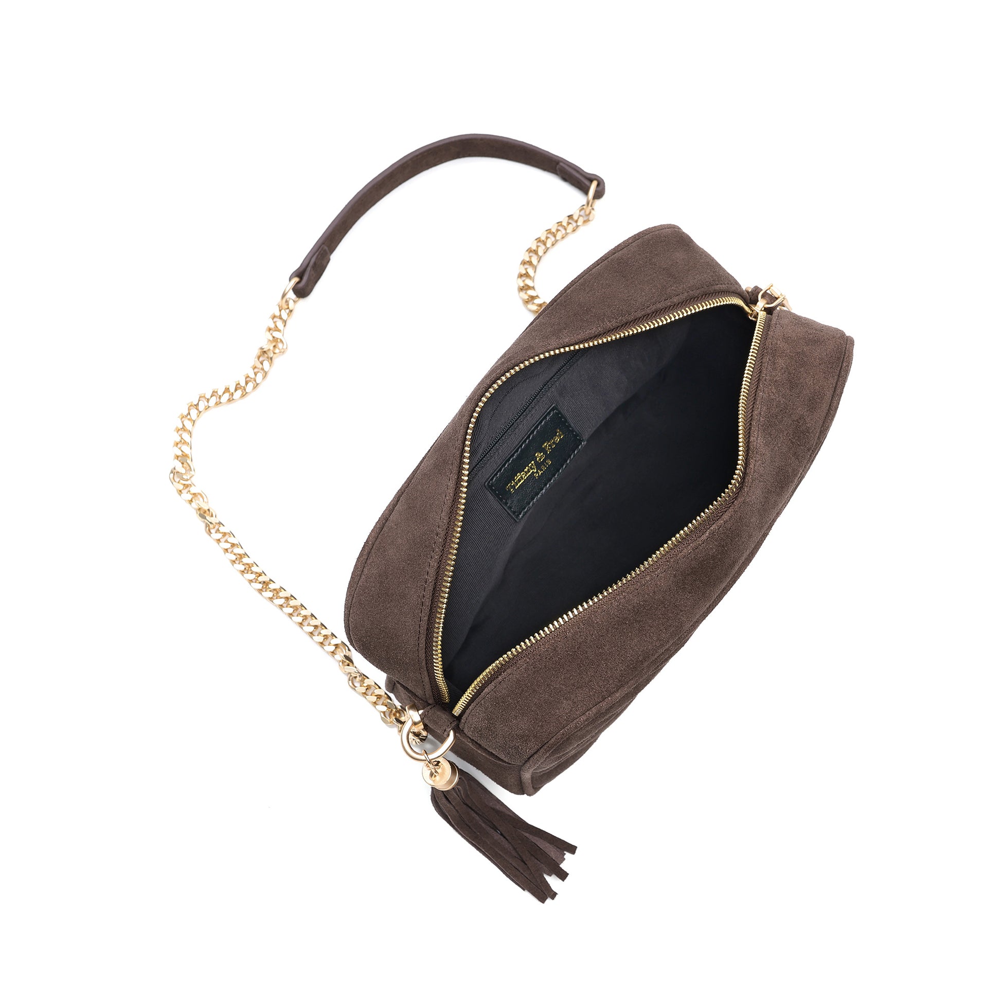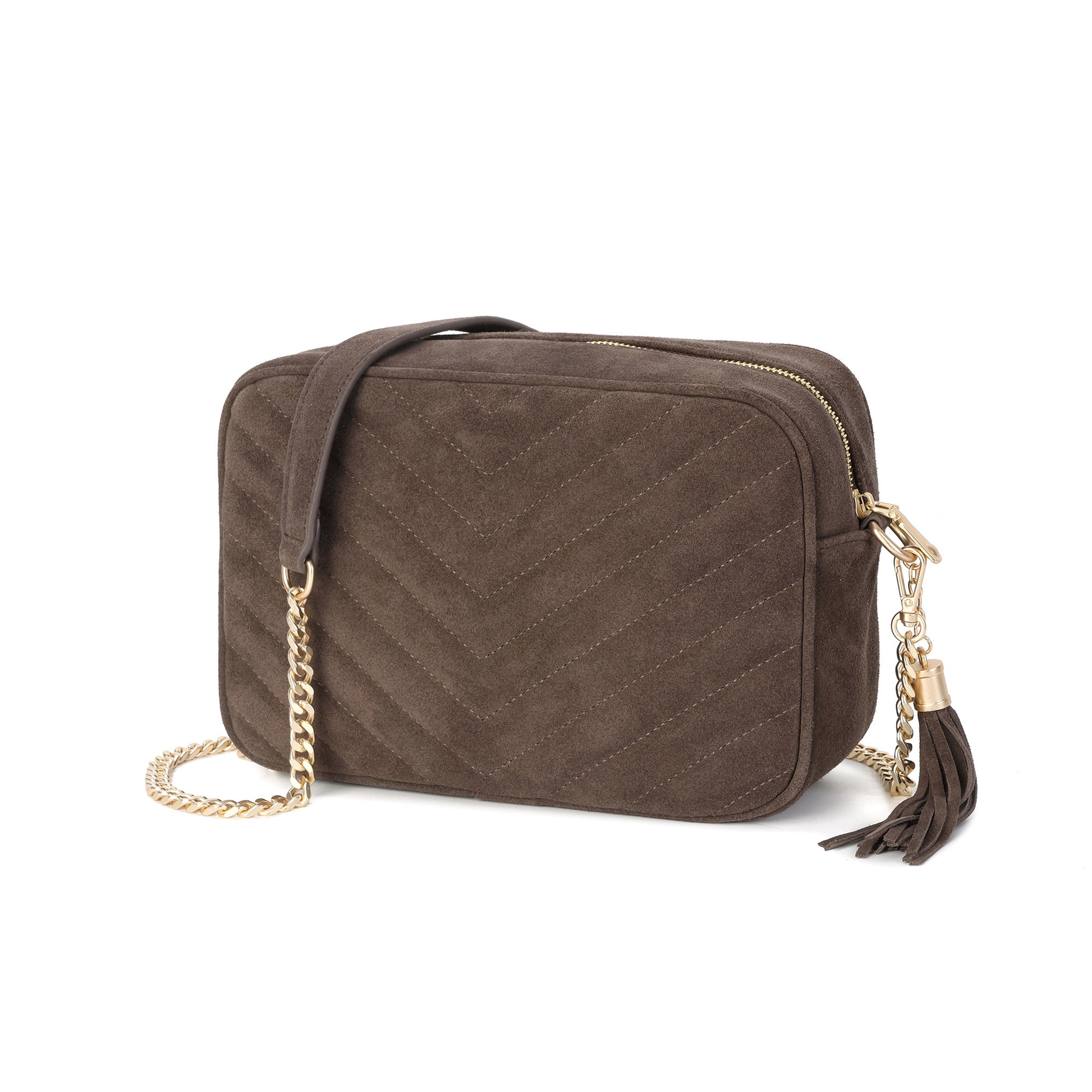 Suede Chevron Camera Bag with Chain Strap & Tassel