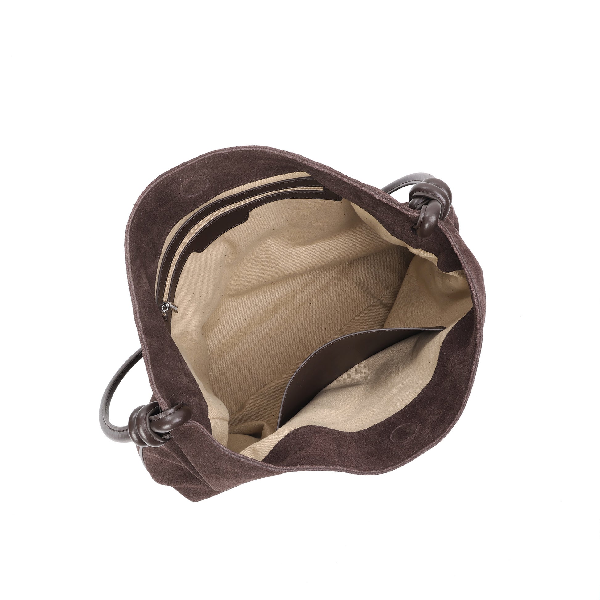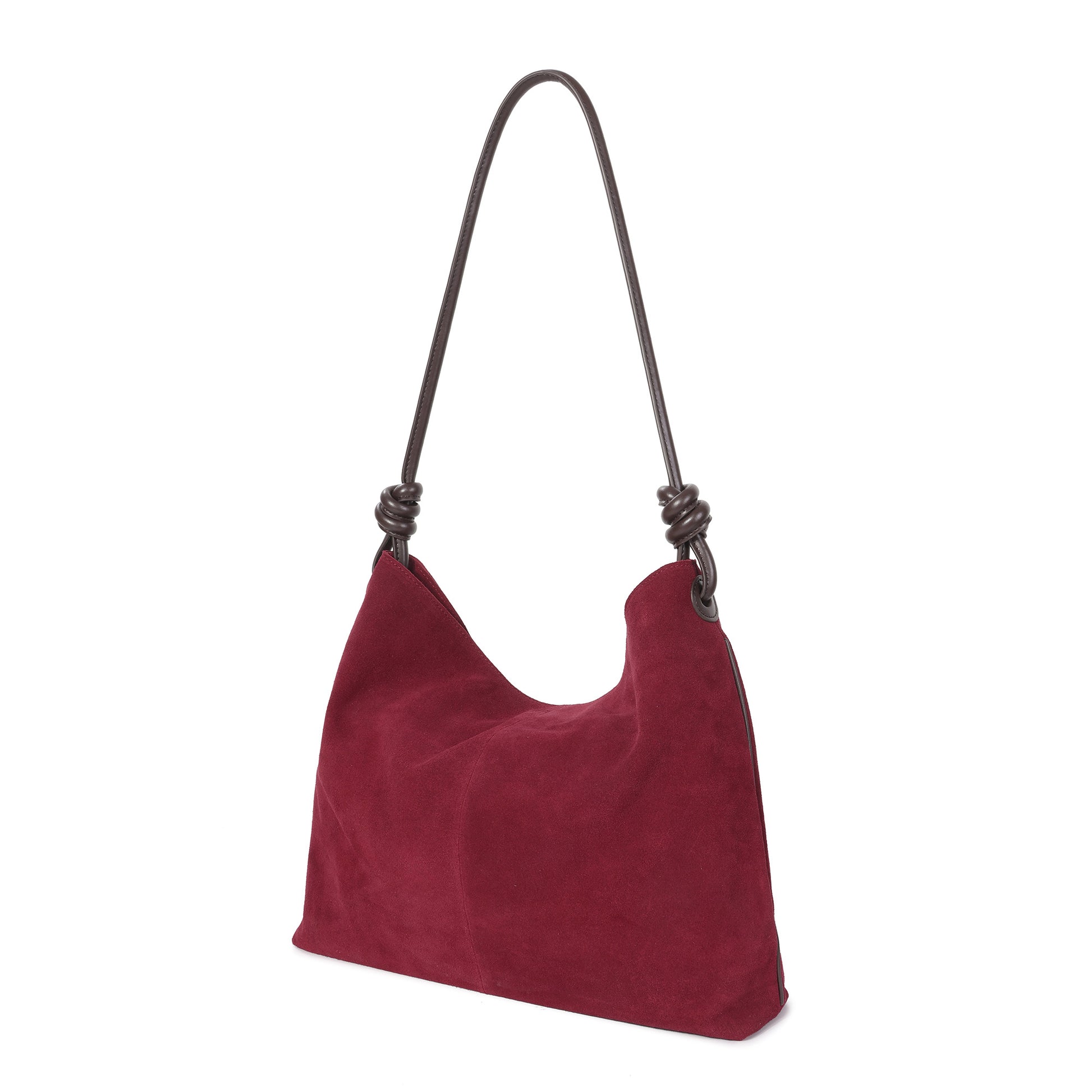 Suede Shoulder Hobo Bag with Knotted Leather Strap
