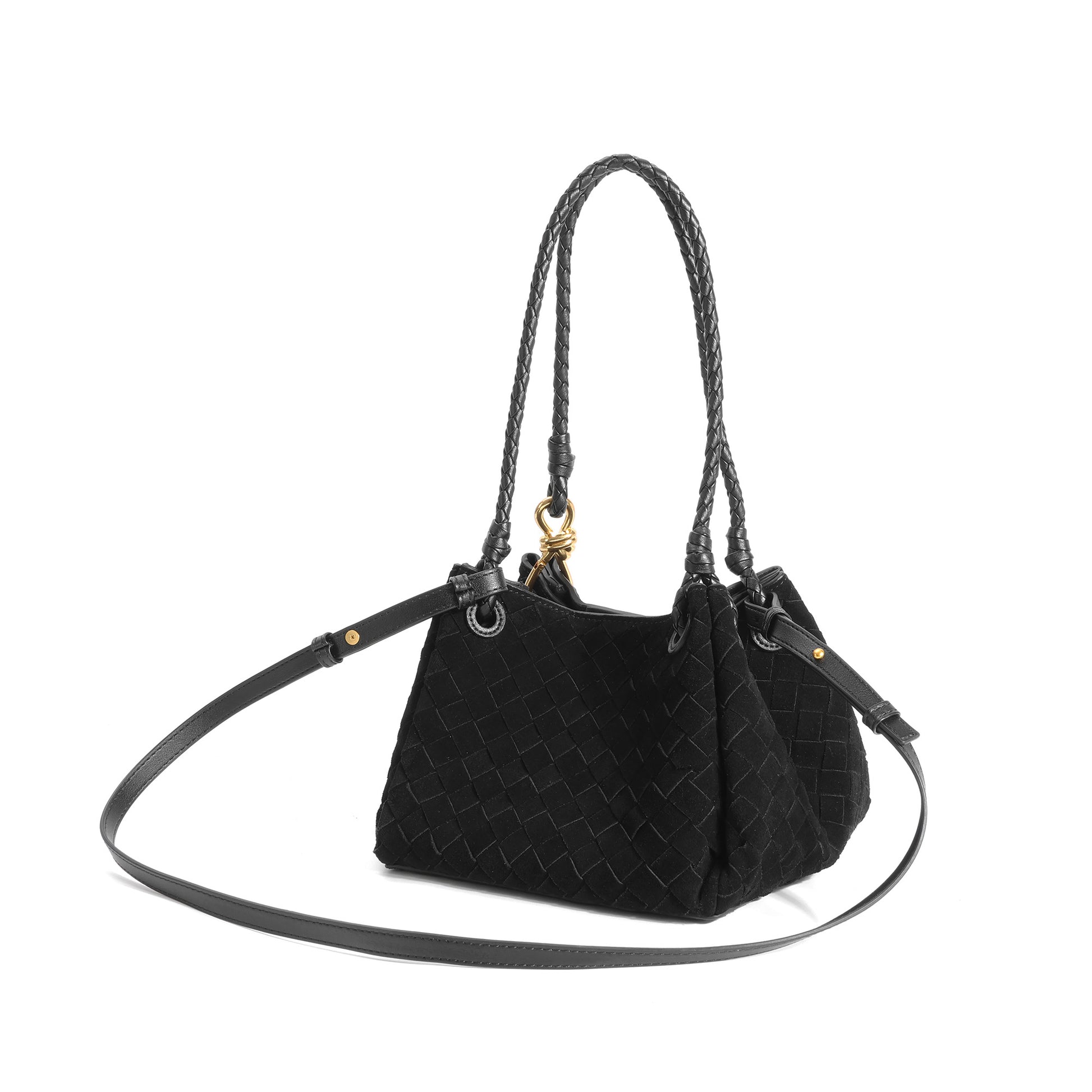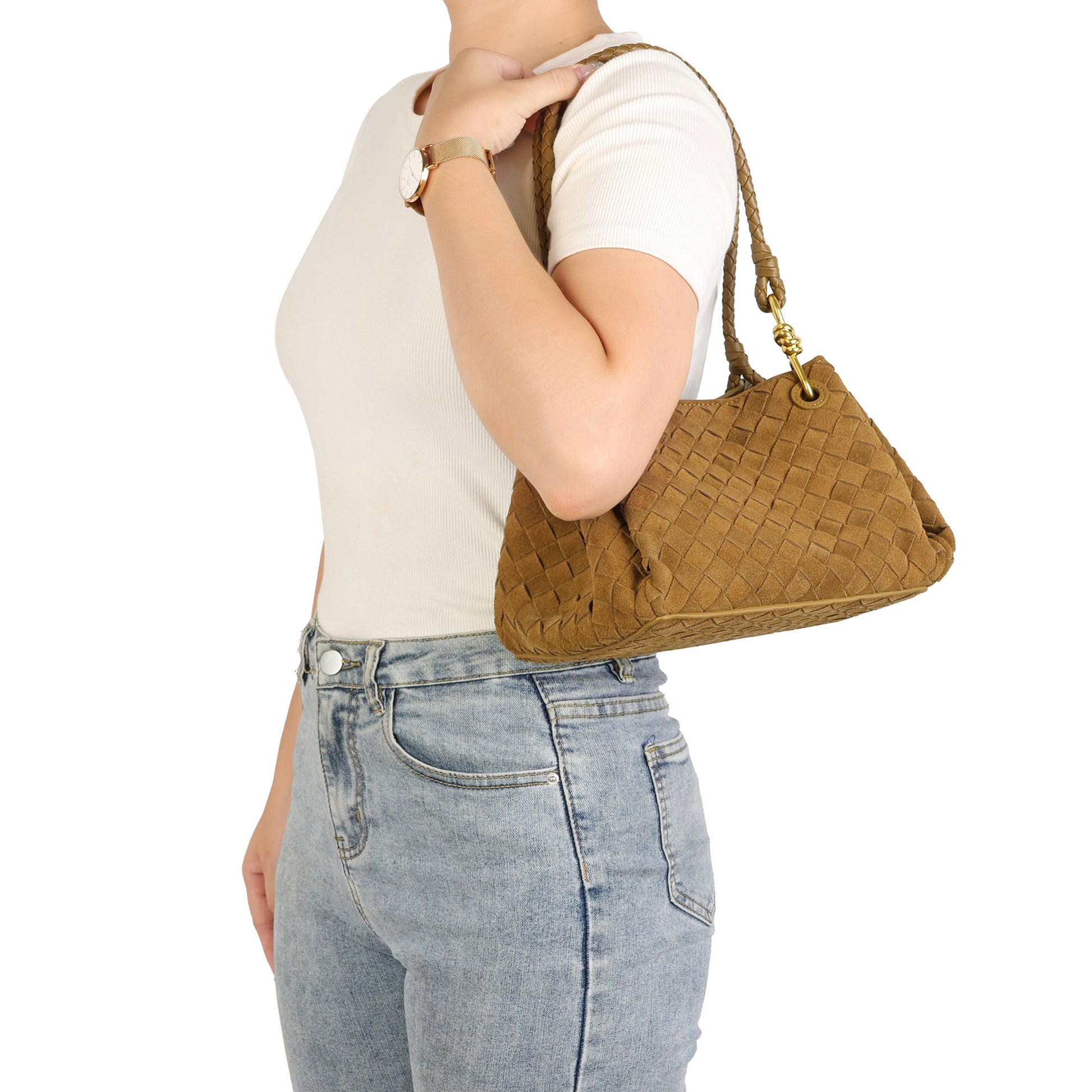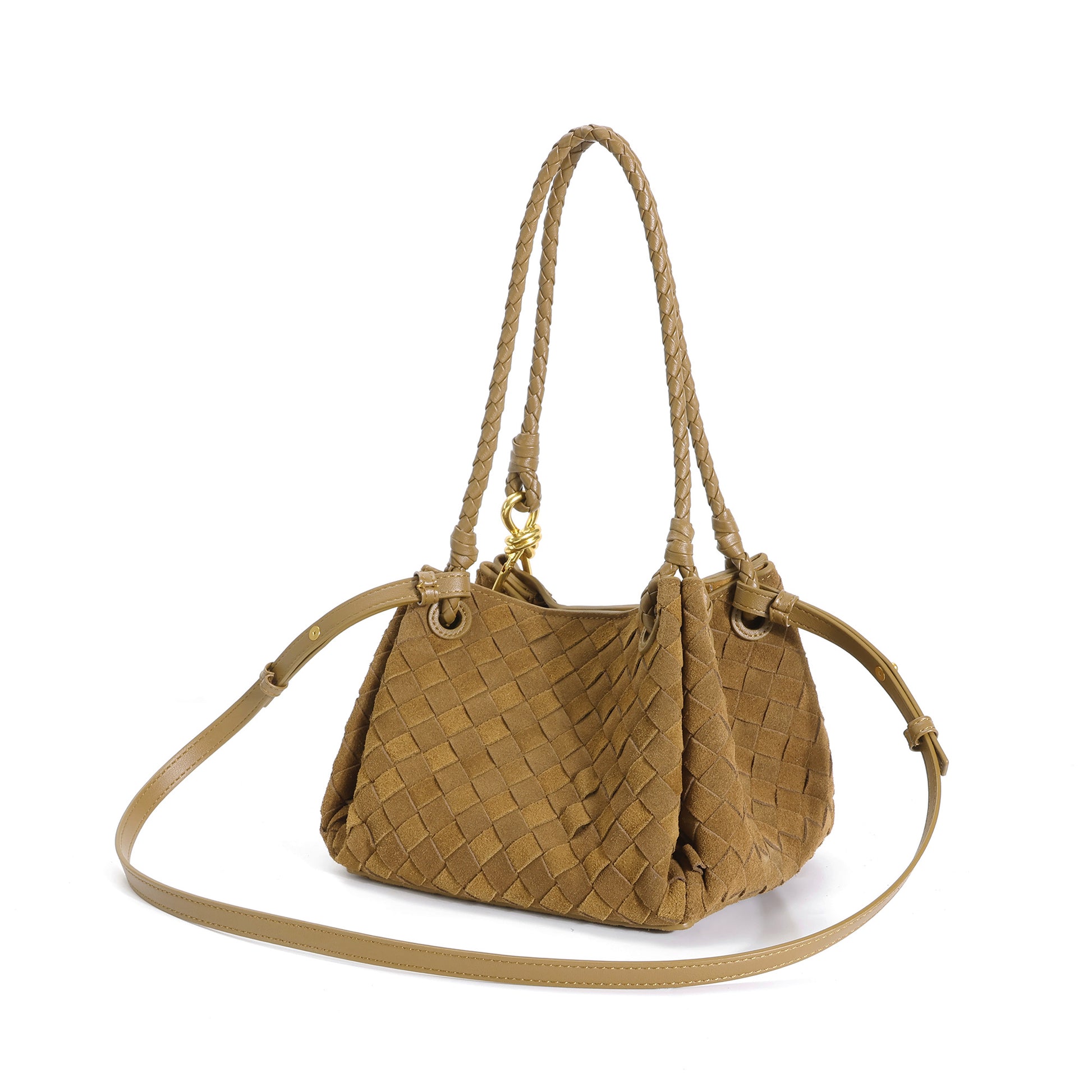 Suede Woven Leather Shoulder Bag with Braided Strap