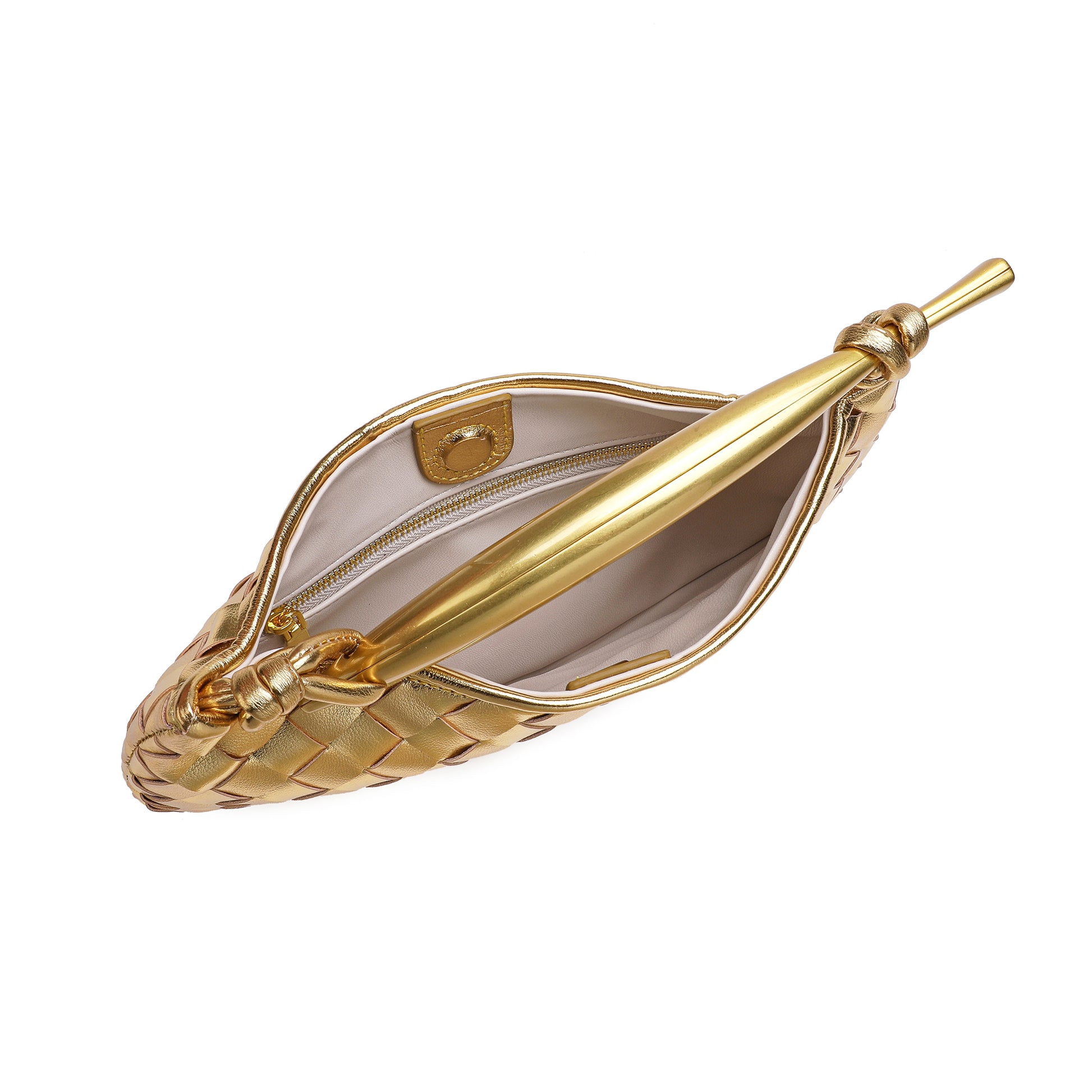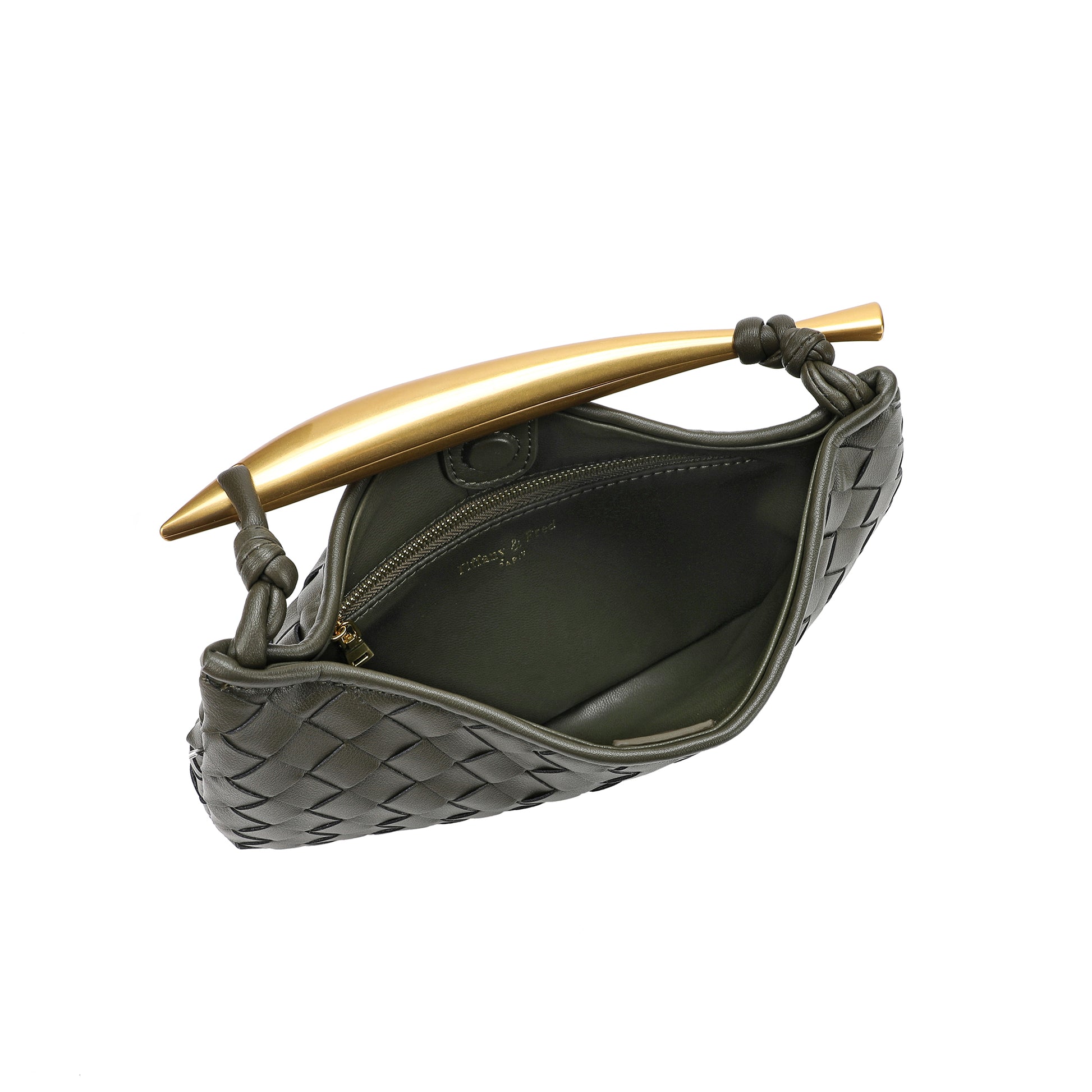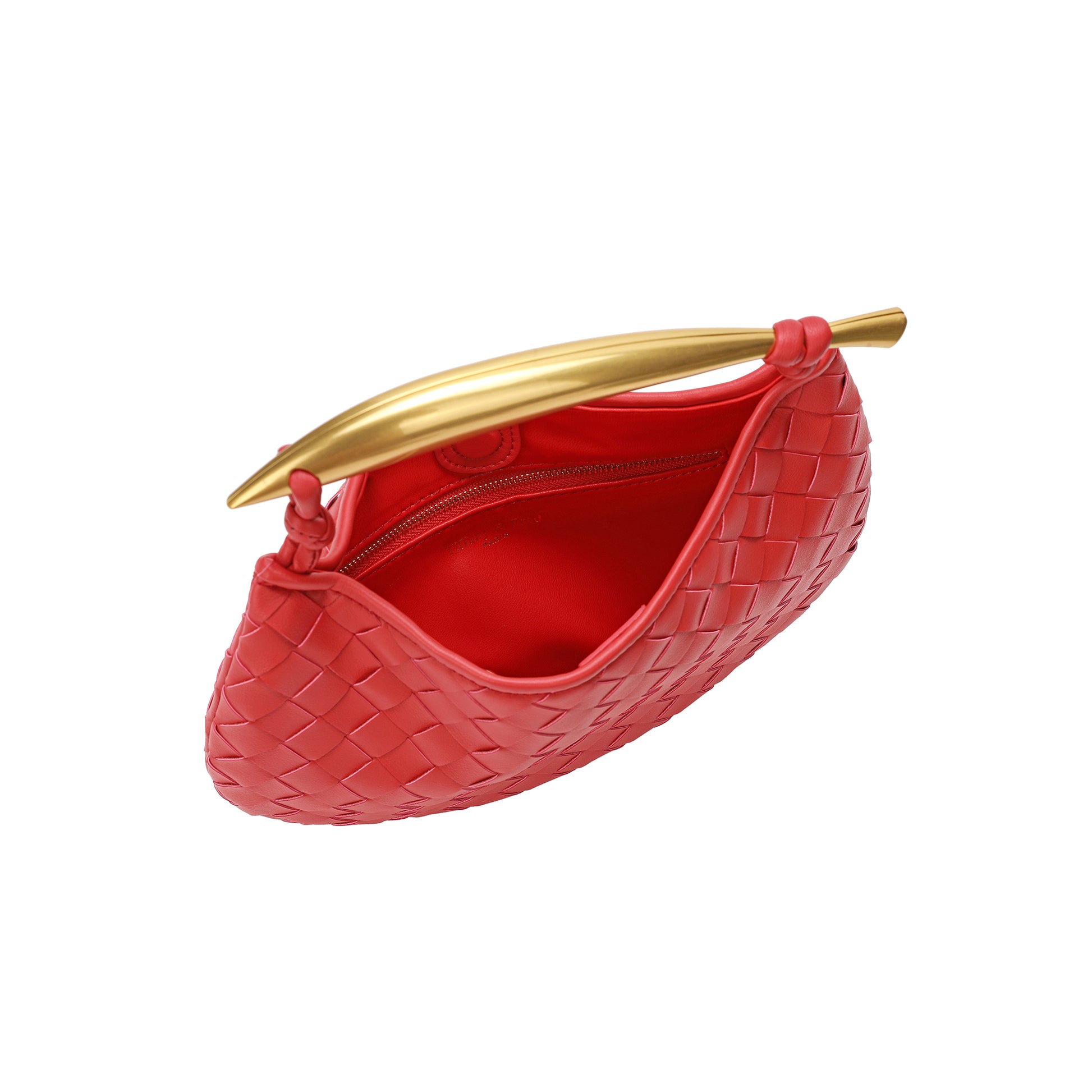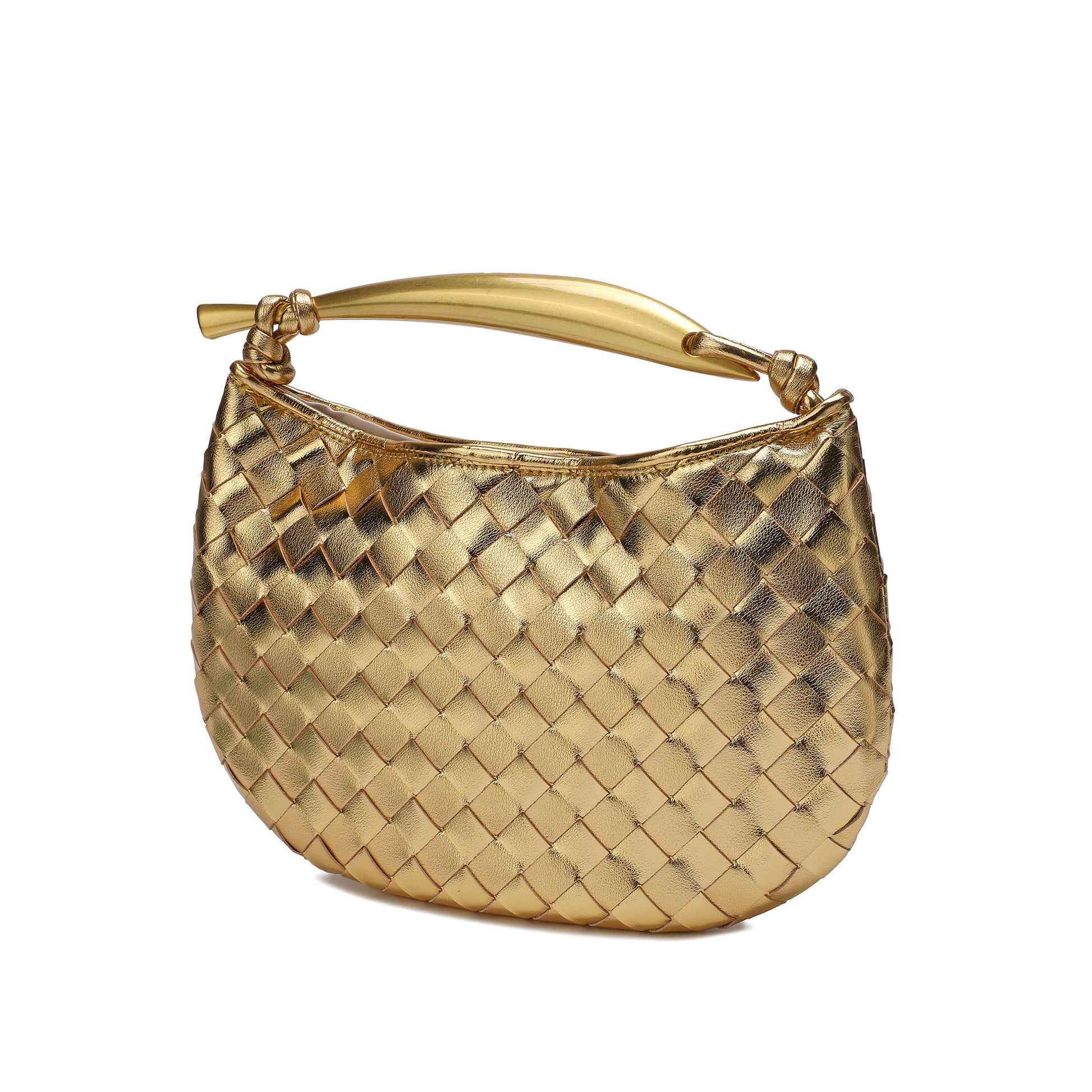 A Unique Woven Leather Pouch/Bag with a Unique & Exclusive Top golden-tone Handle
