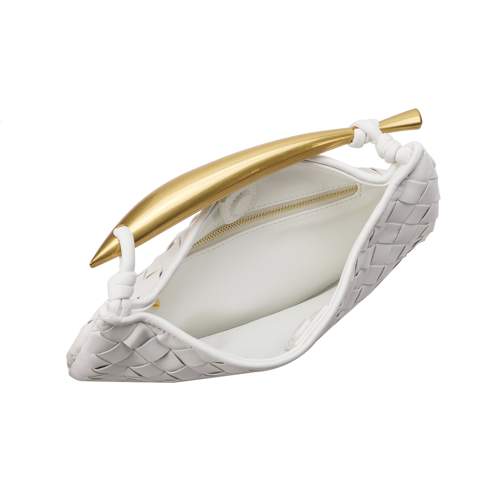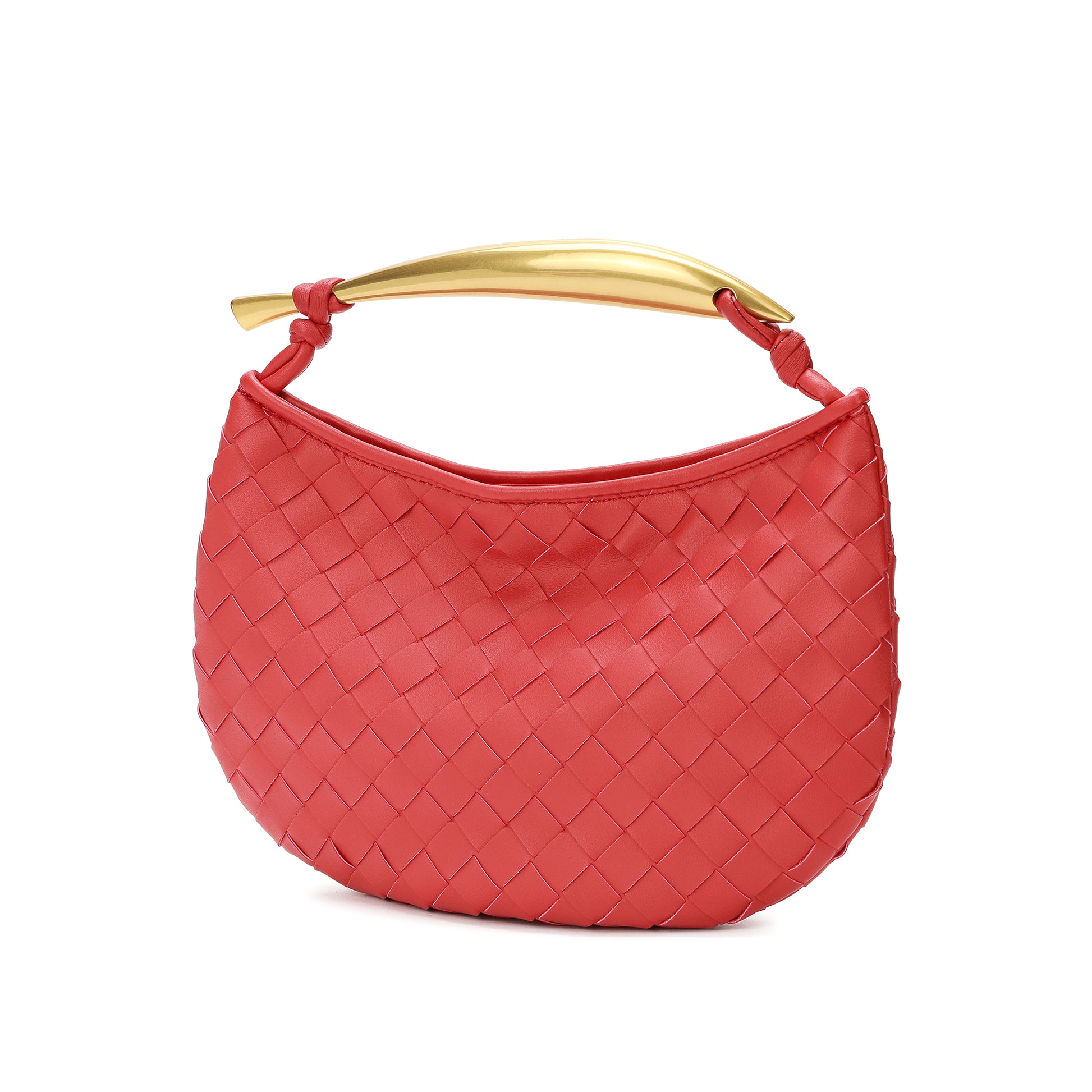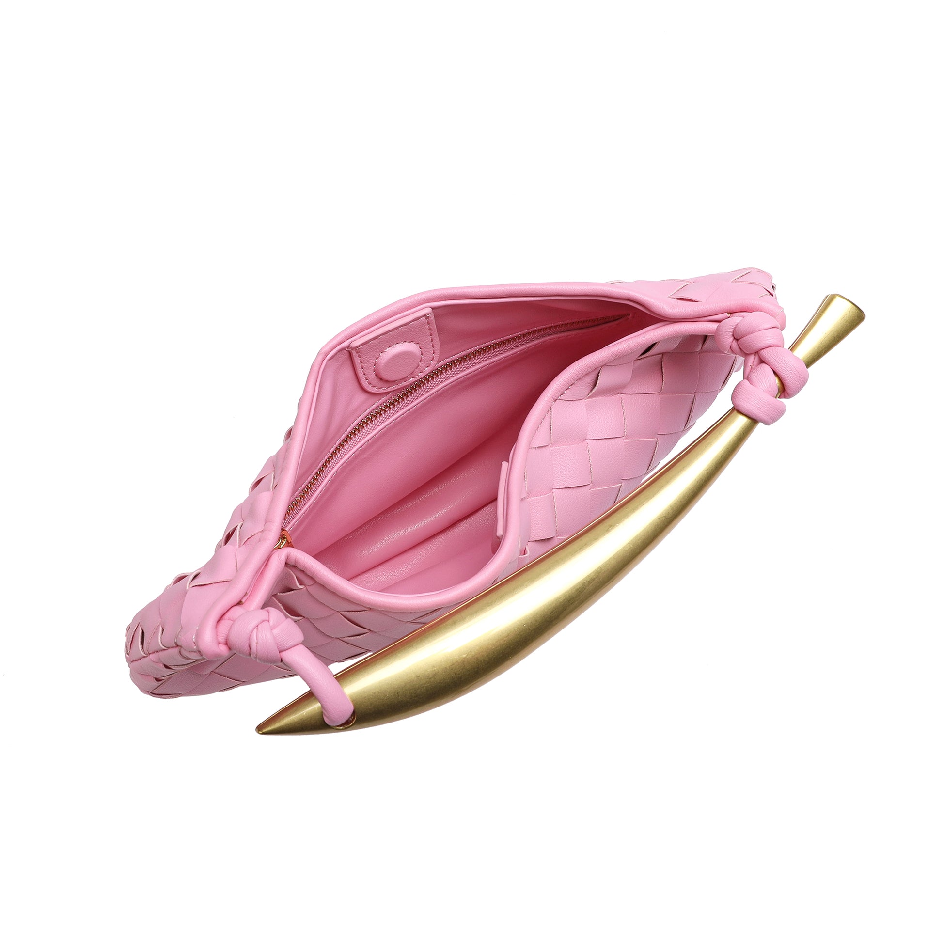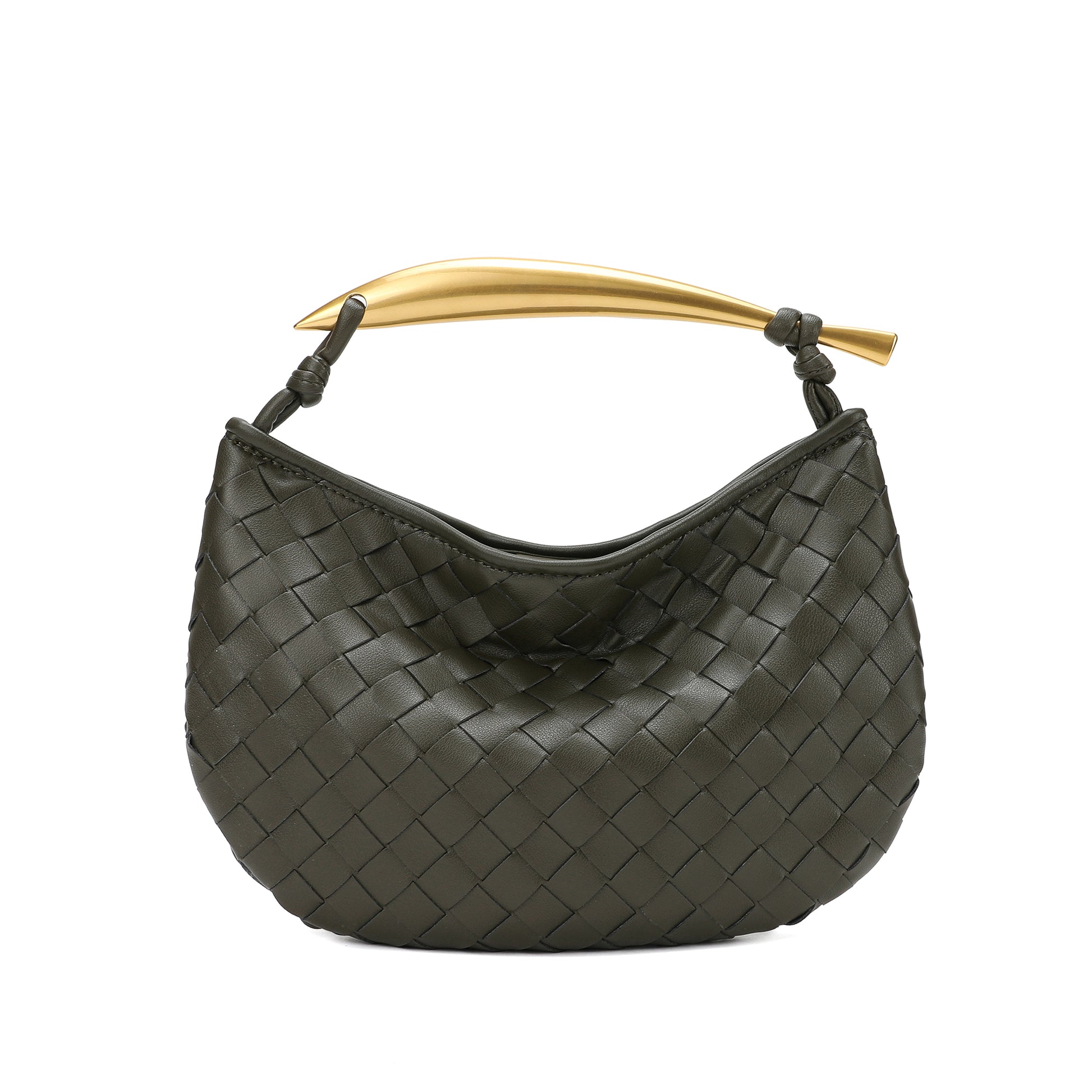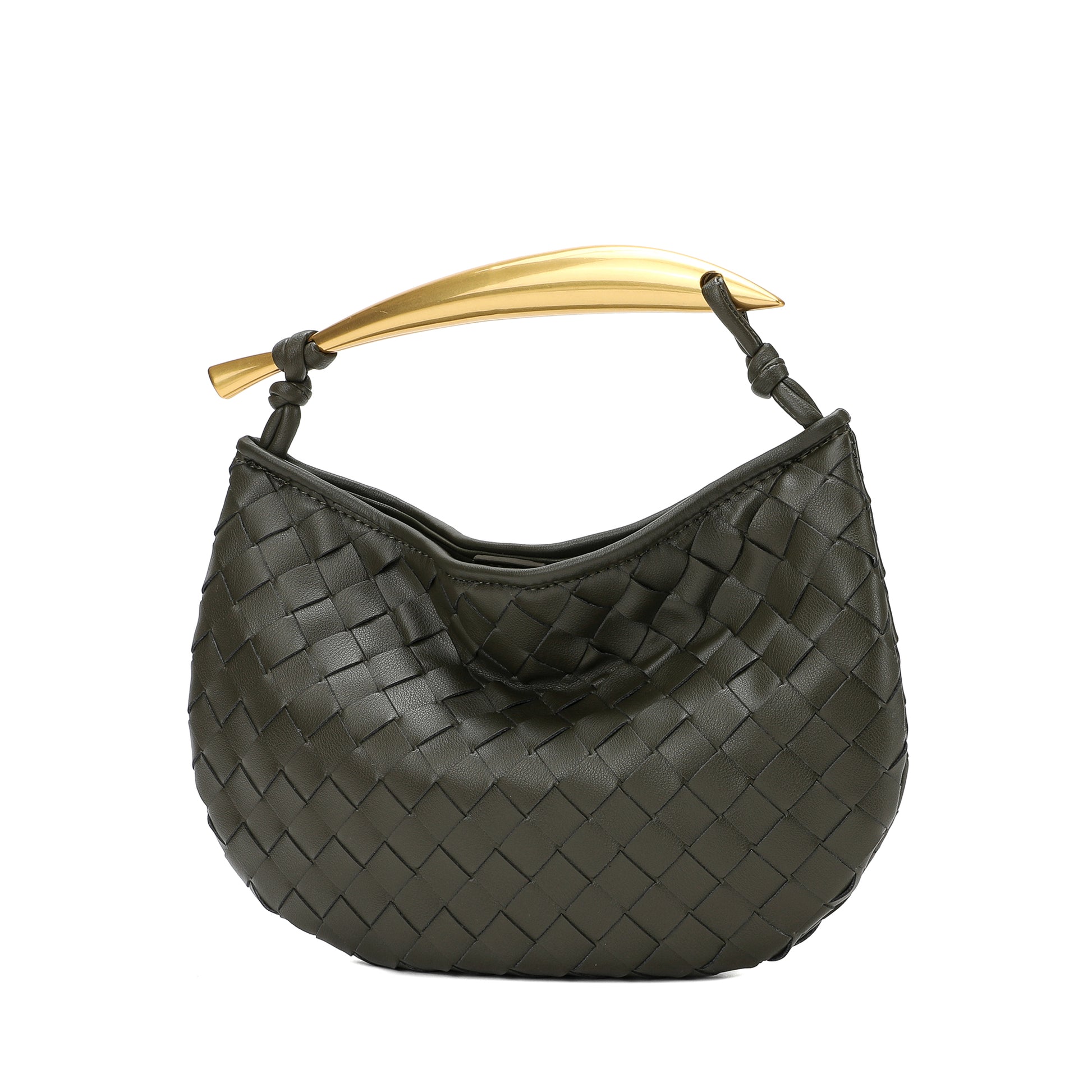 A Unique Woven Leather Pouch/Bag with a Unique & Exclusive Top golden-tone Handle