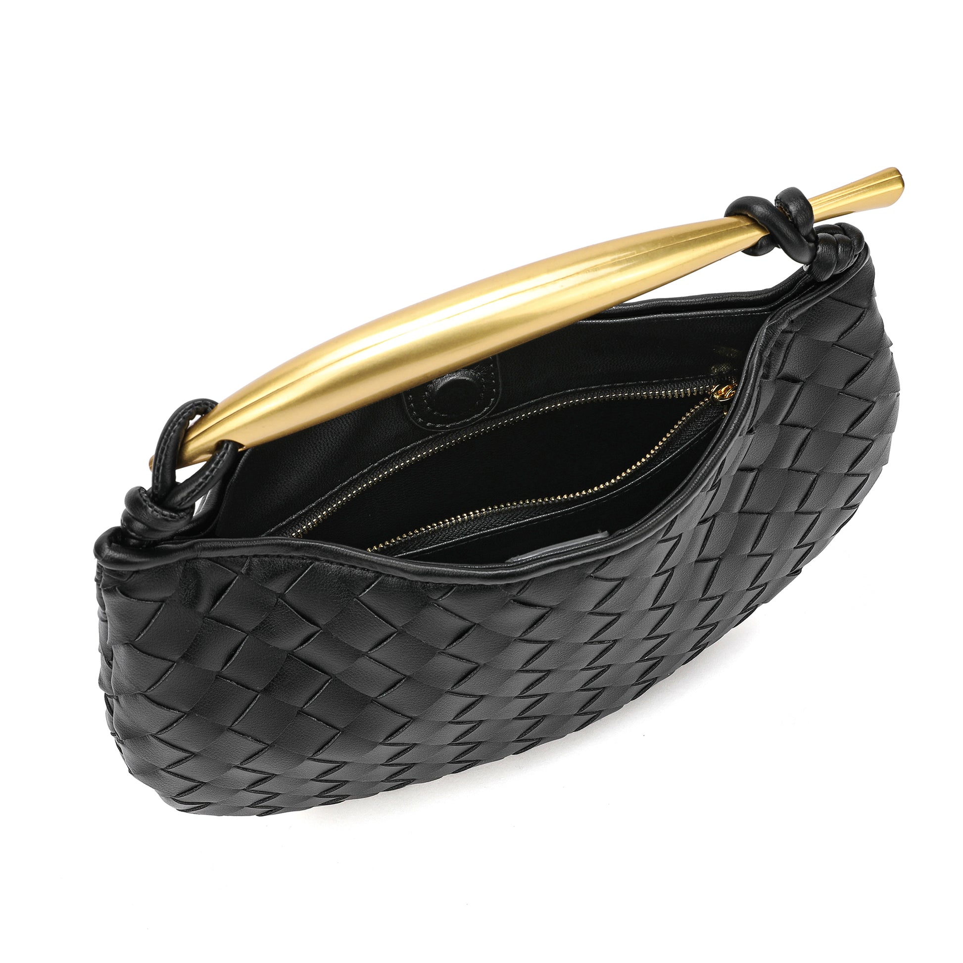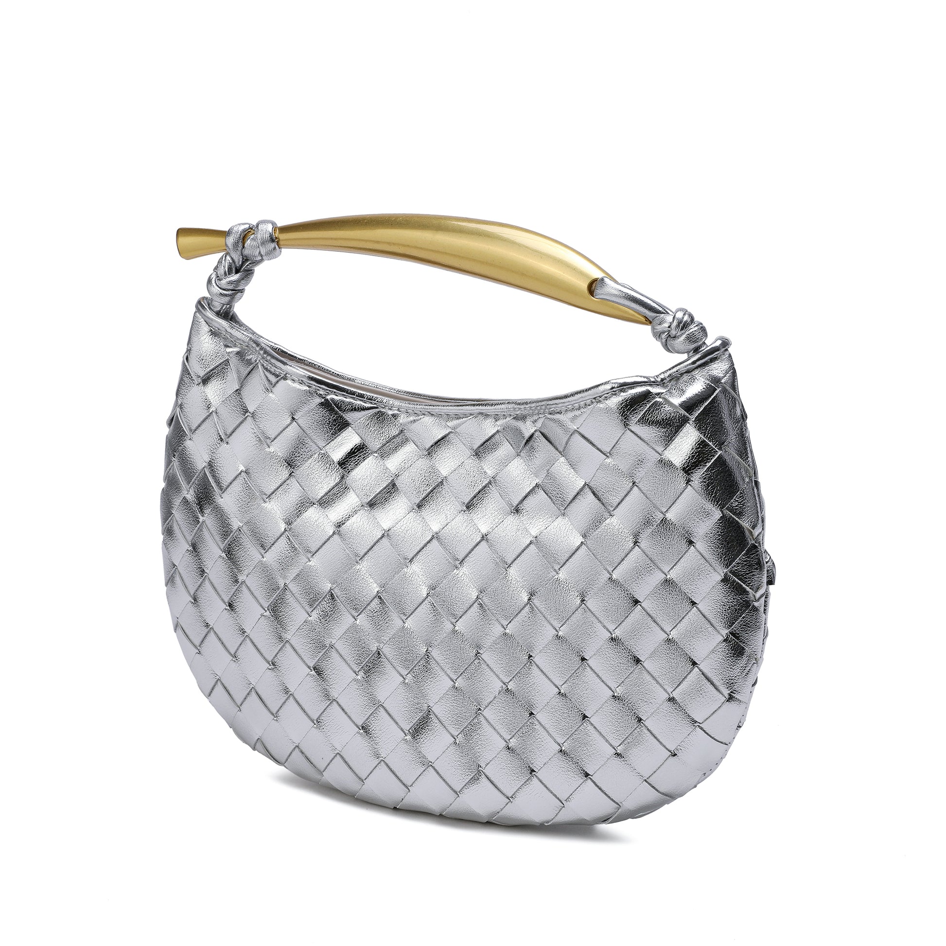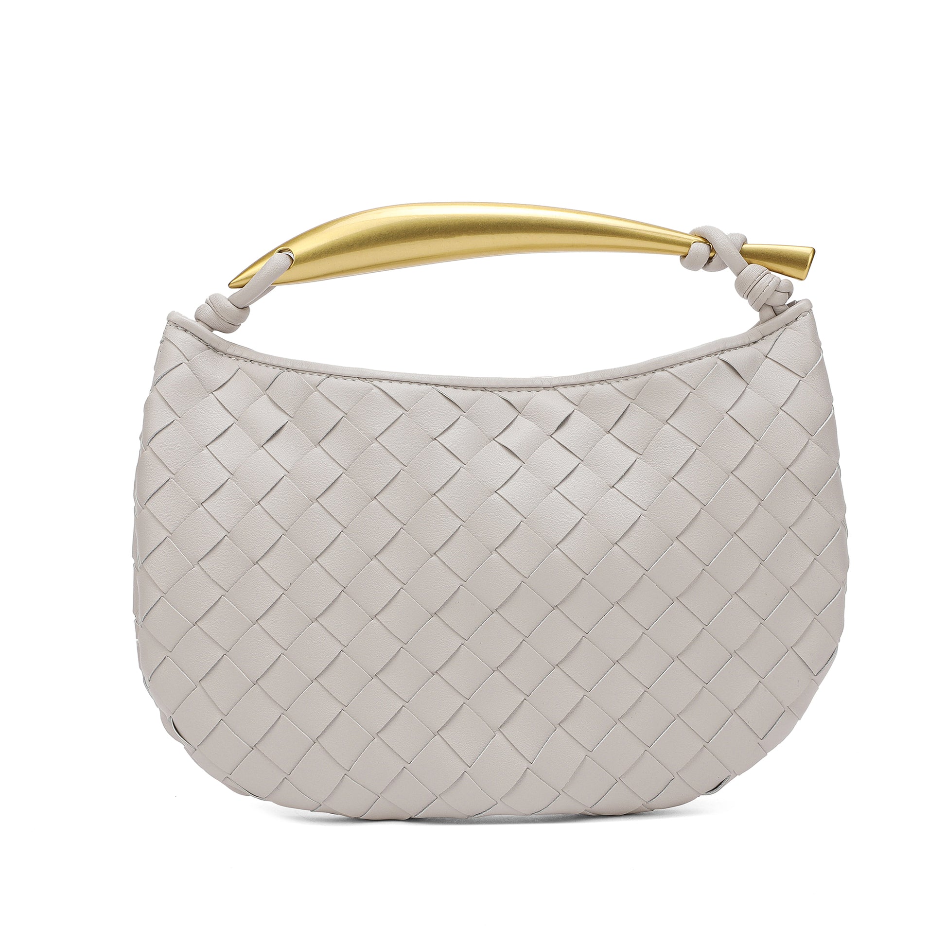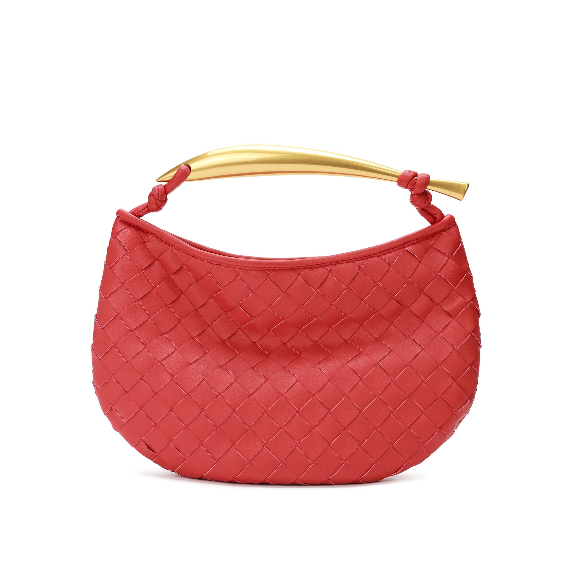 A Unique Woven Leather Pouch/Bag with a Unique & Exclusive Top golden-tone Handle