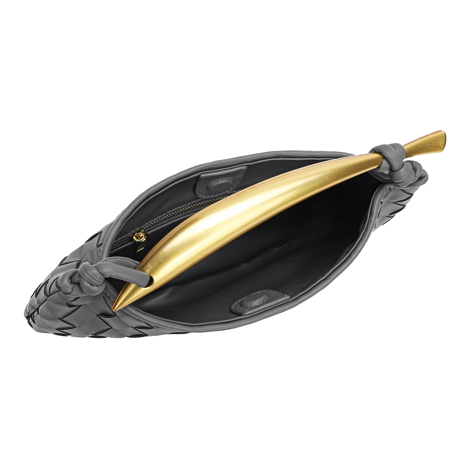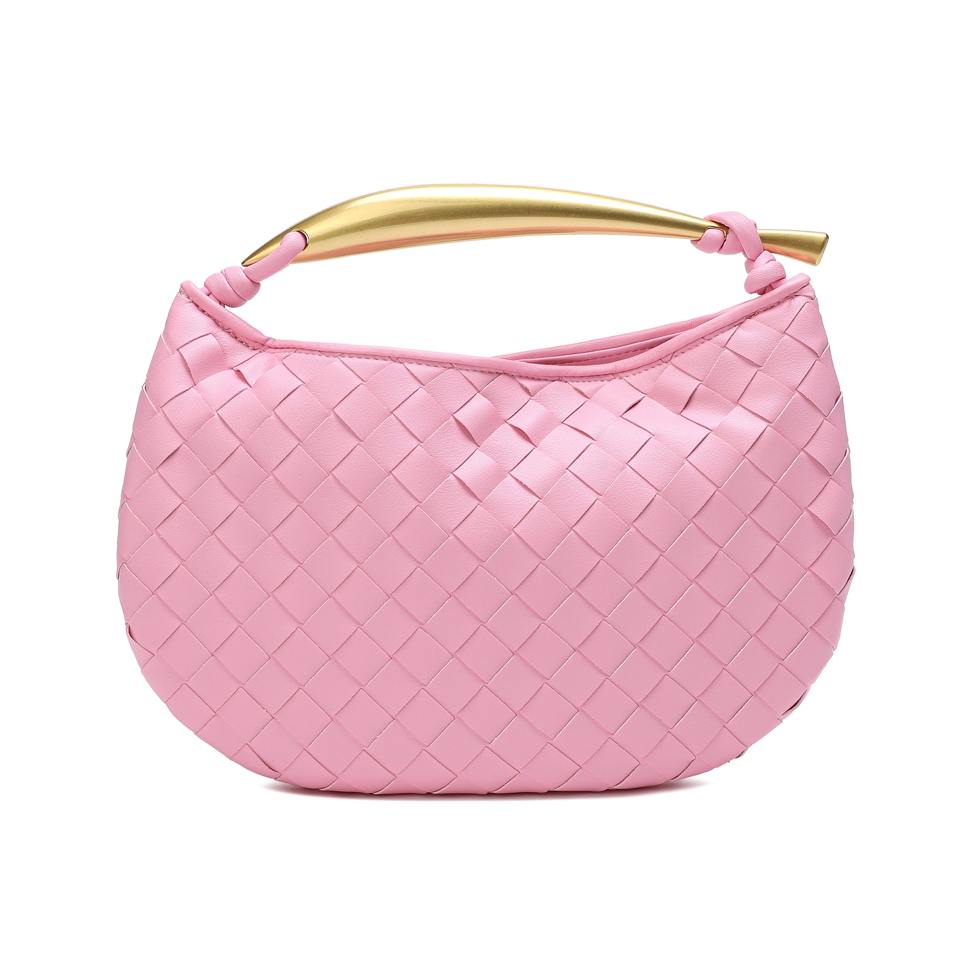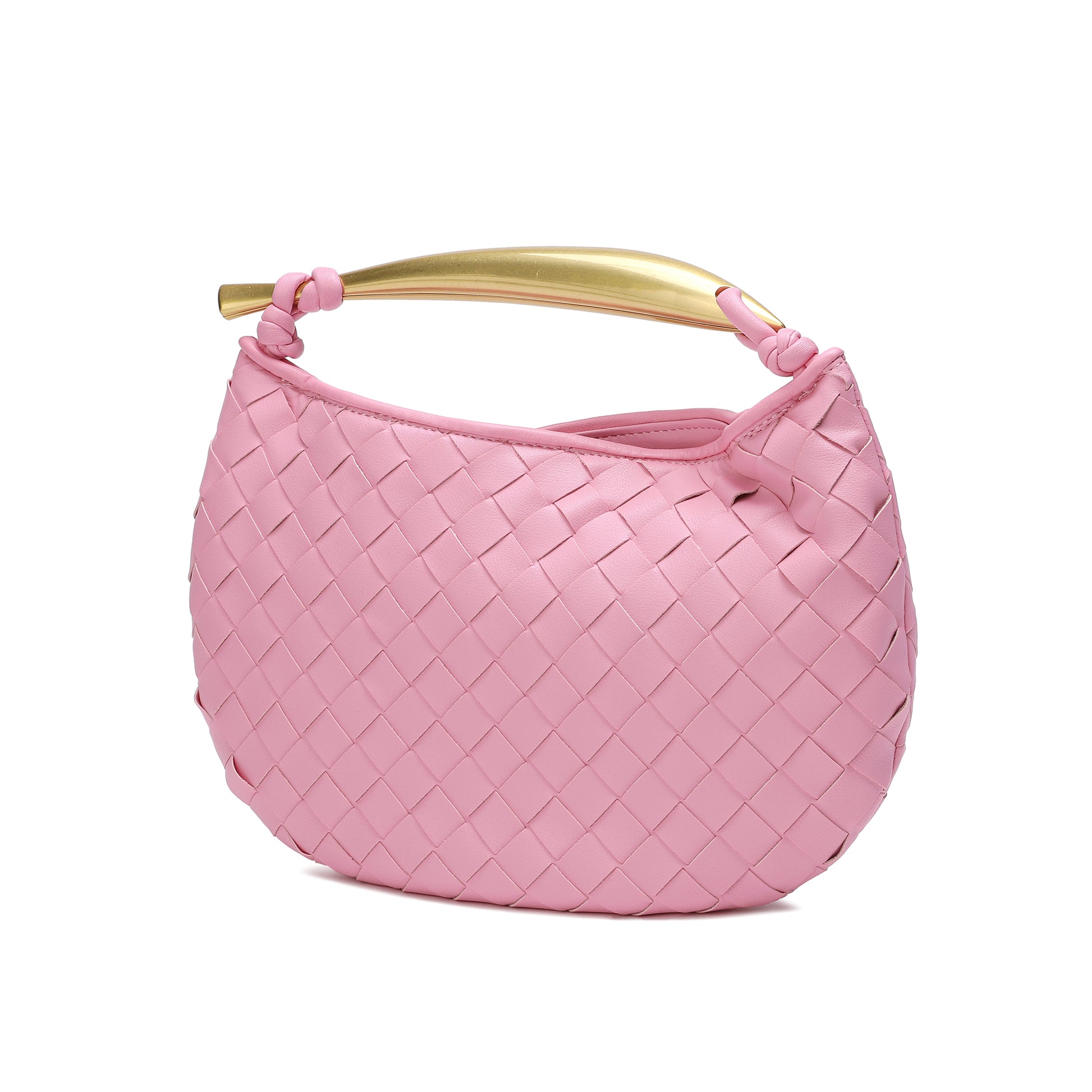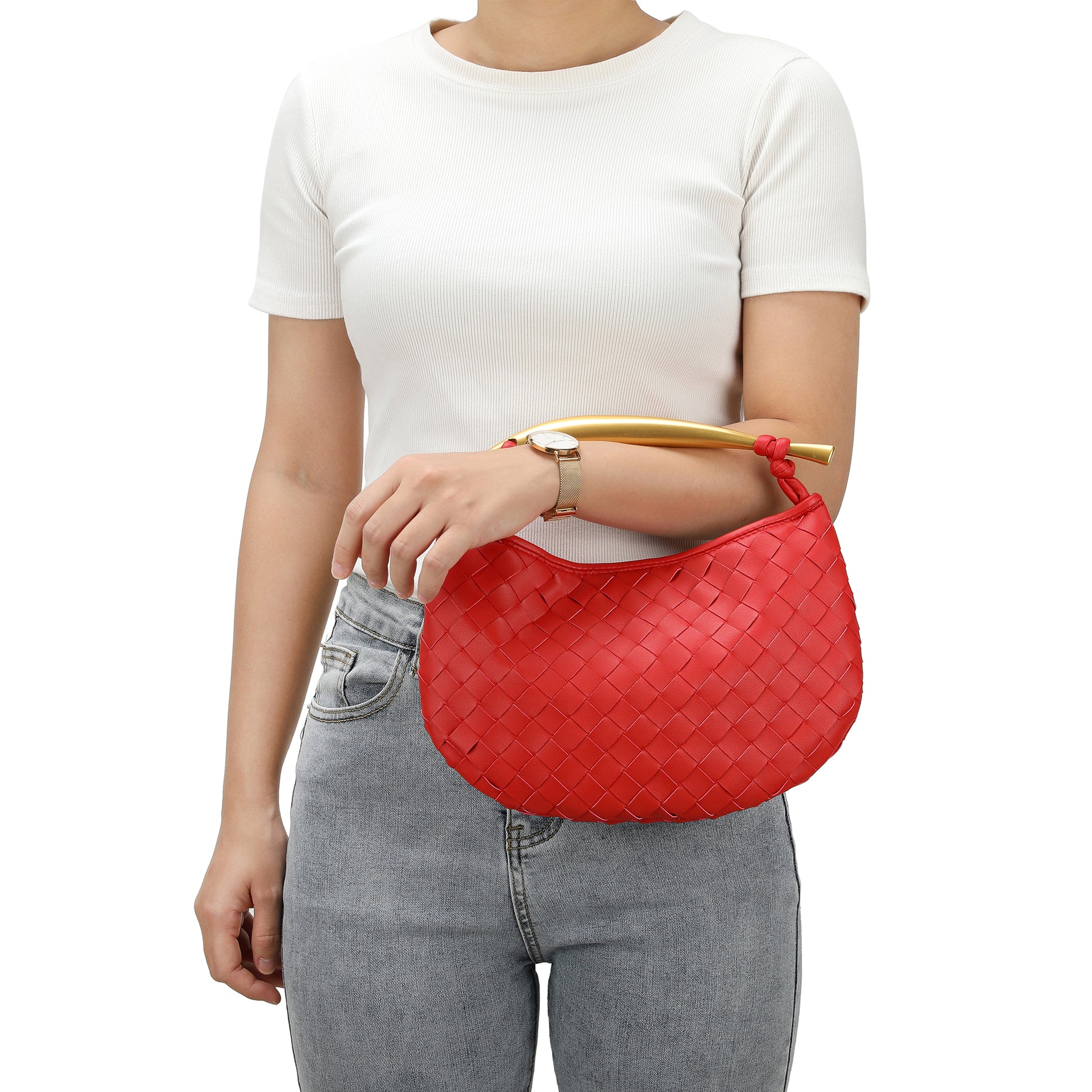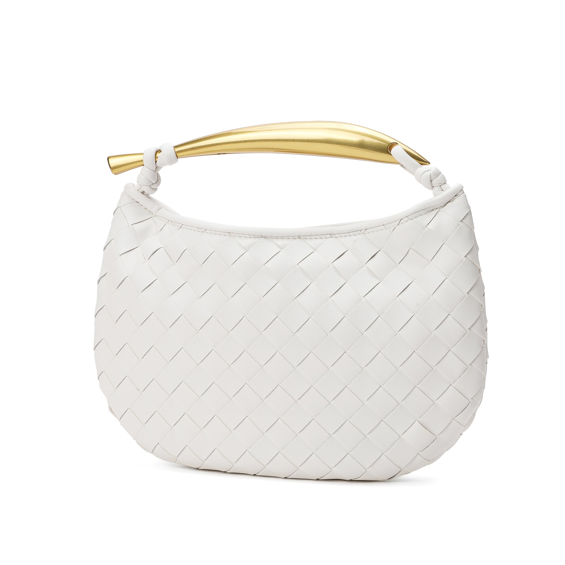 A Unique Woven Leather Pouch/Bag with a Unique & Exclusive Top golden-tone Handle